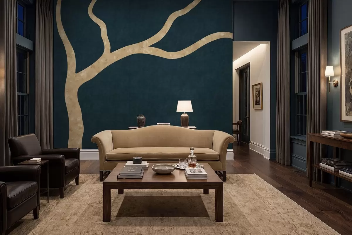 Fototapet Ljus gren på mörk turkos bakgrund Nr. w05144v3