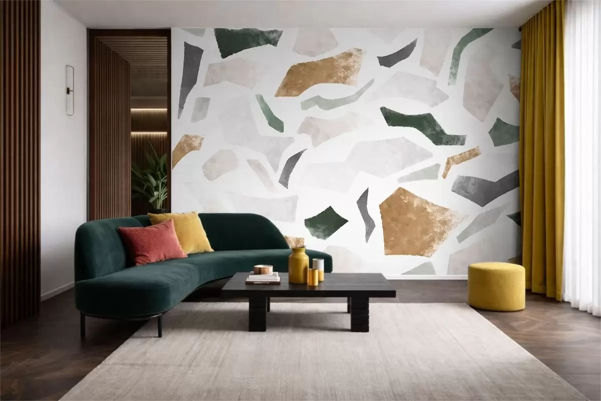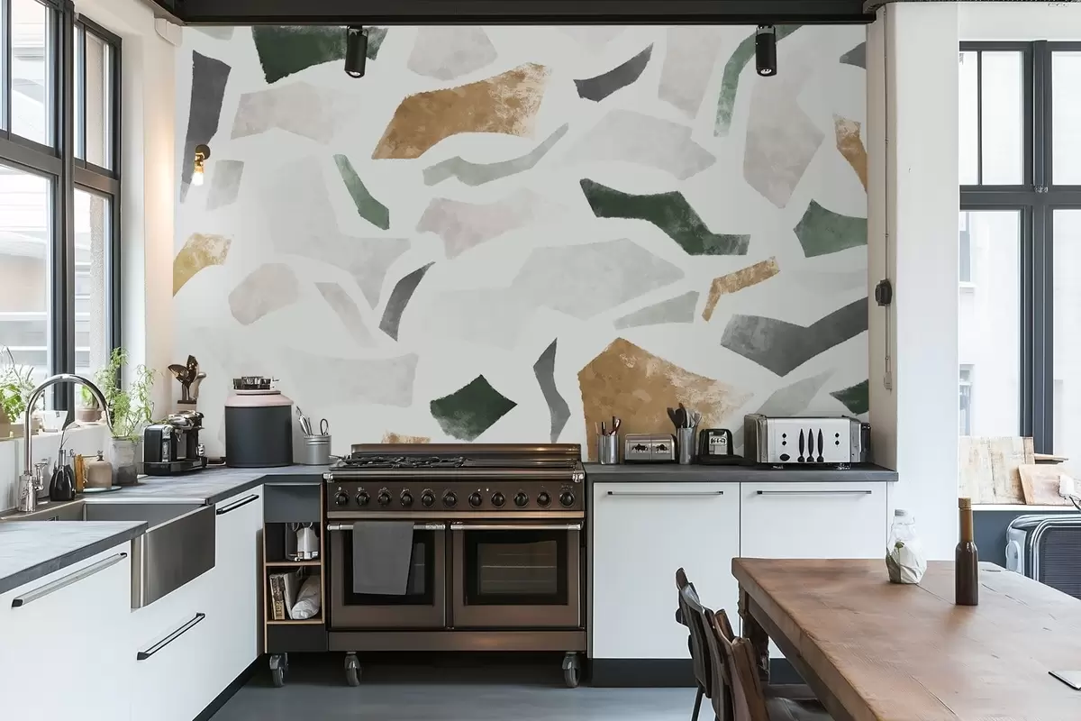 Fototapet Abstrakta texturerade fragment i gröna och beige nyanser Nr. w05146