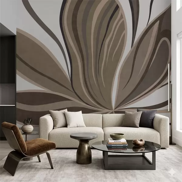Fototapet Stiliserad blomma med böljande linjer i bruna nyanser Nr. w05147