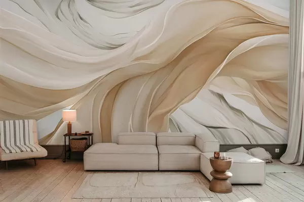 Fototapet Flödande beige tygvågor Nr. w05152