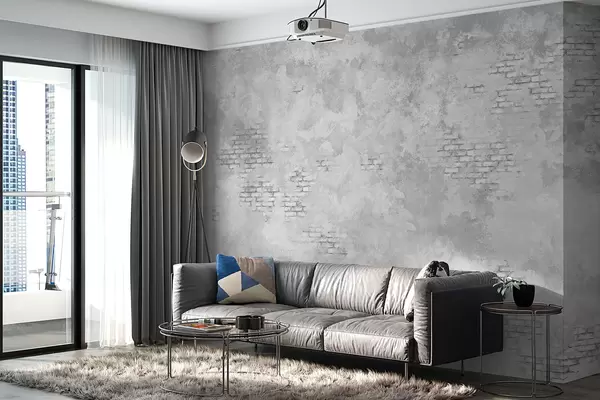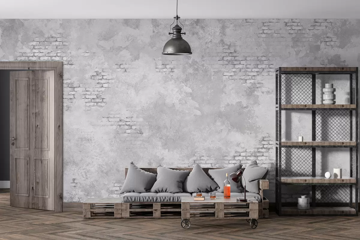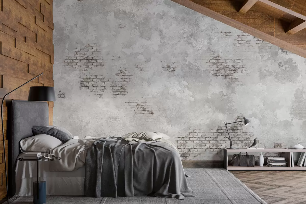 Fototapet Grungegrå puts med inslag av synligt tegel Nr. w05161v2