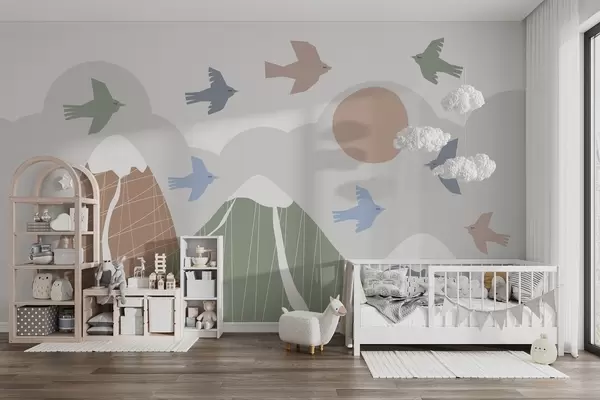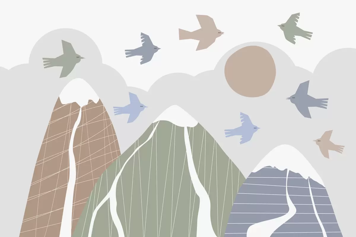 Fototapet Skandinaviska berg och fåglar Nr. w05166v1