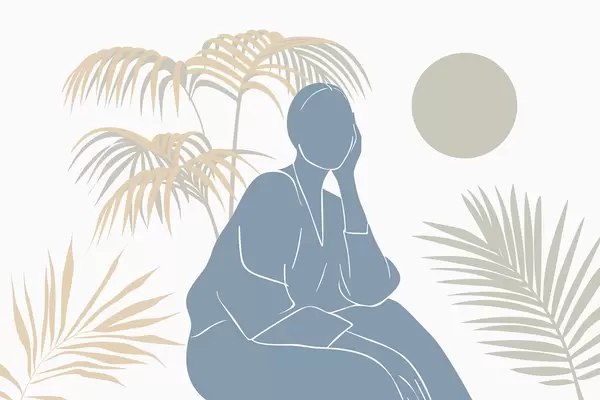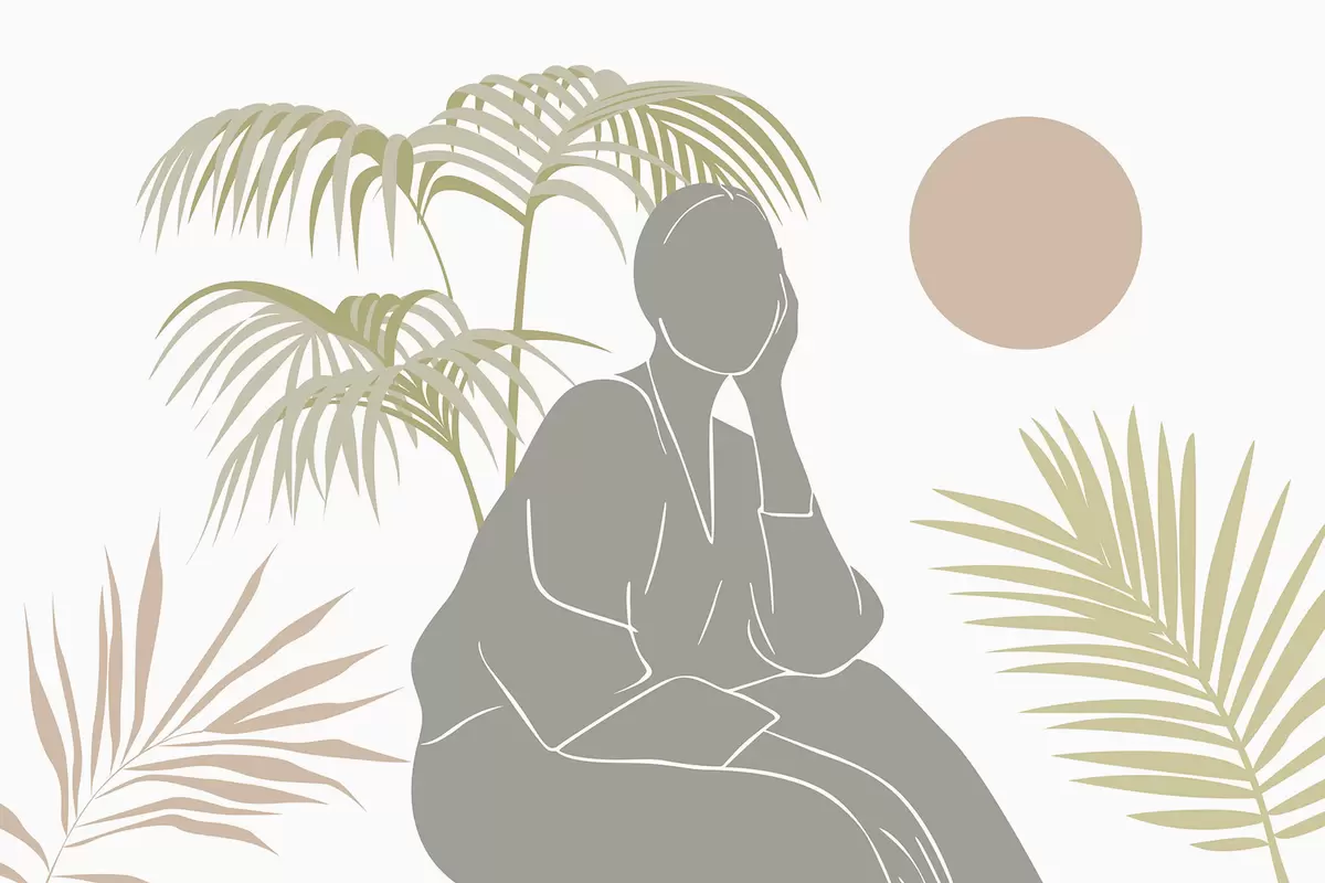 Fototapet Silhuett av en kvinna och palmblad Nr. w05190