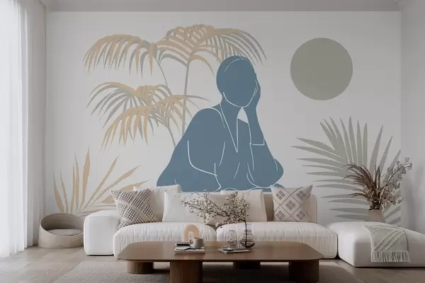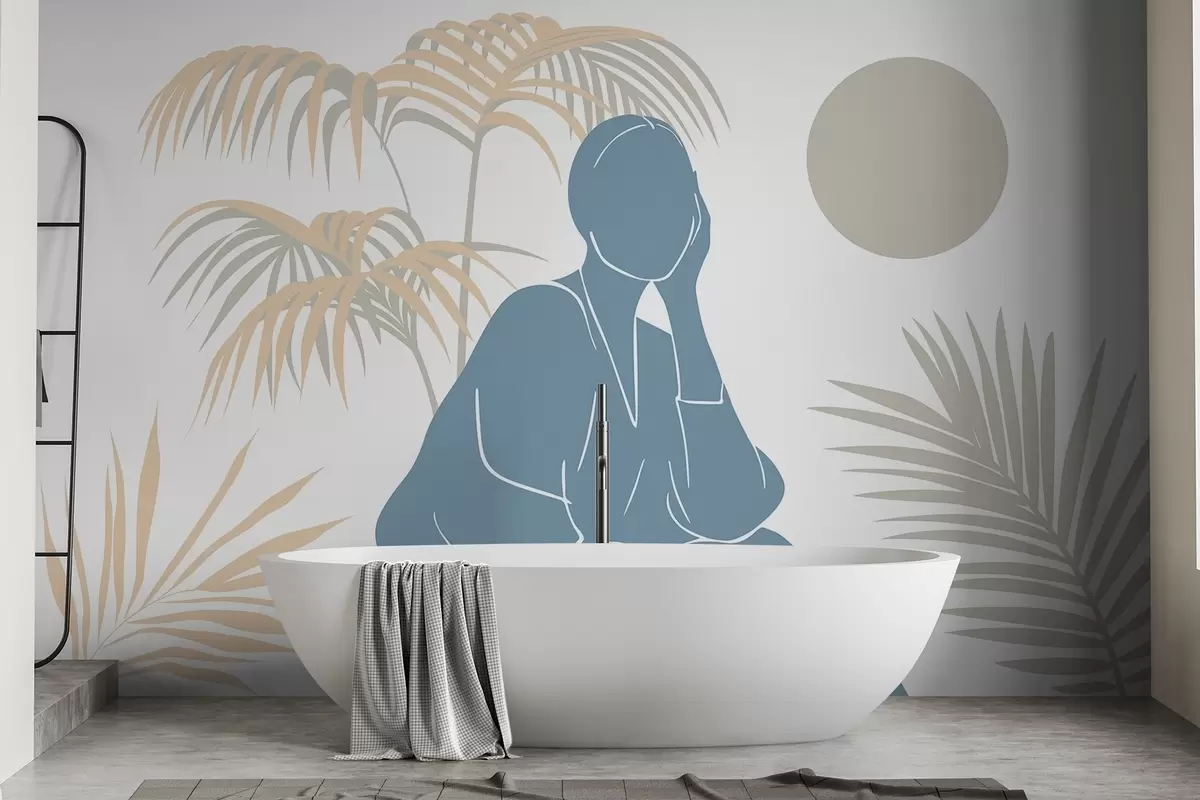 Fototapet Silhuett av en kvinna och palmblad Nr. w05190v1