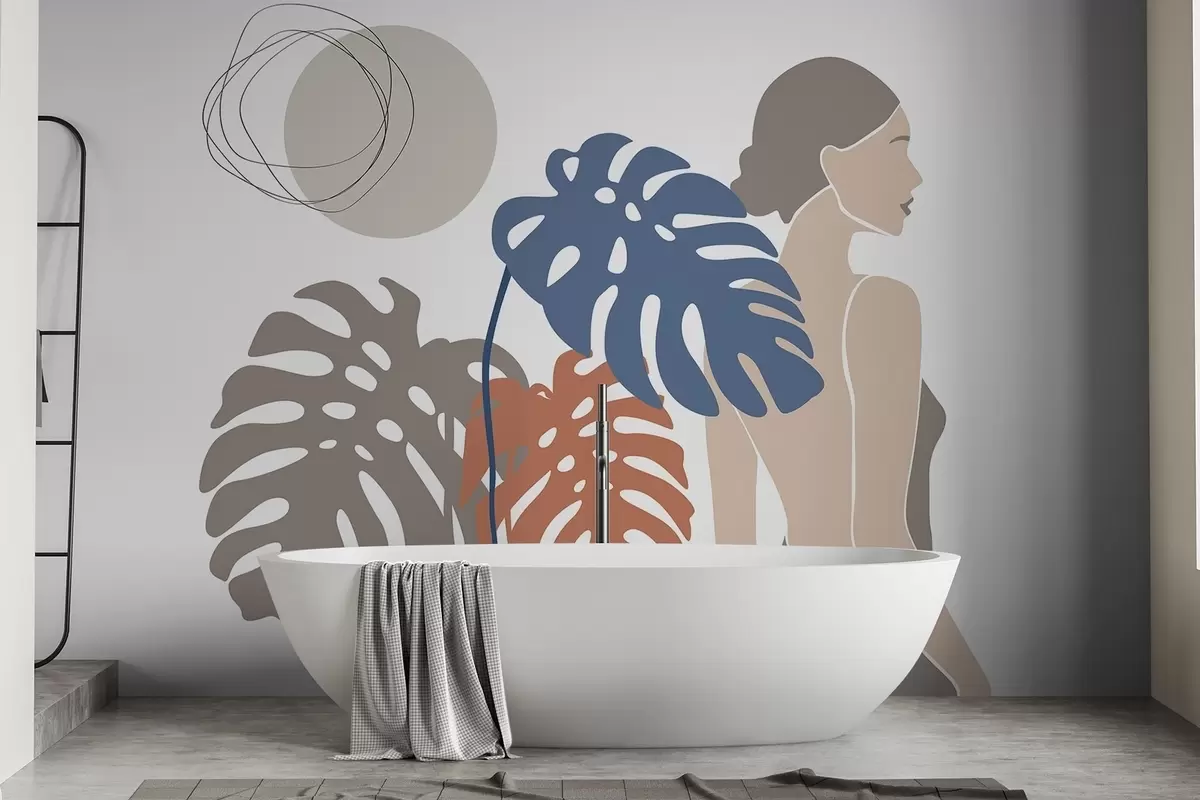 Fototapet Silhuett av en kvinna nära tropiska blad Nr. w05192