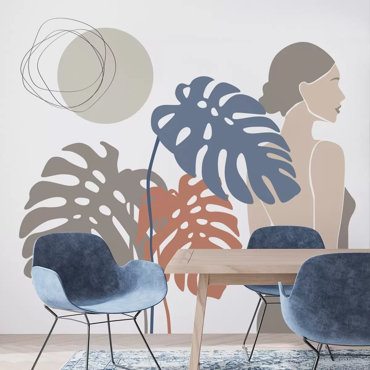 Fototapet Silhuett av en kvinna nära tropiska blad Nr. w05192