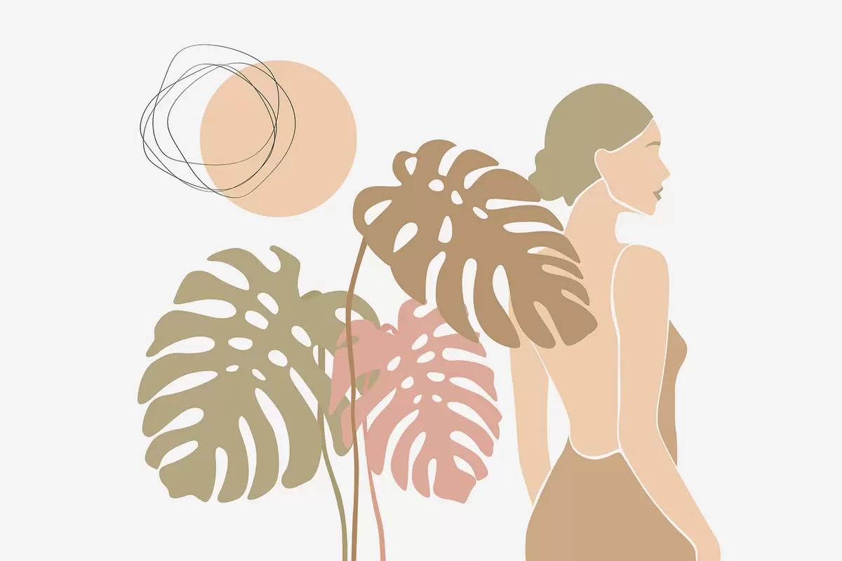 Fototapet Silhuett av en kvinna nära tropiska blad Nr. w05192v1