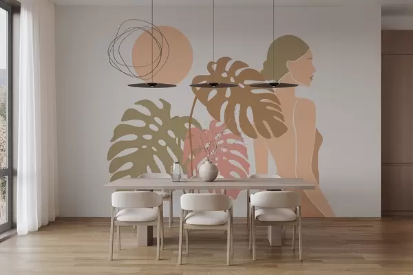 Fototapet Silhuett av en kvinna nära tropiska blad Nr. w05192v1