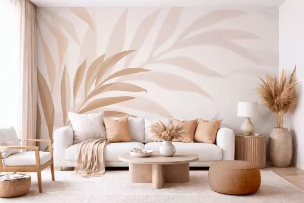 Fototapet stora böjda palmblad i beige och bruna nyanser Nr. w05211