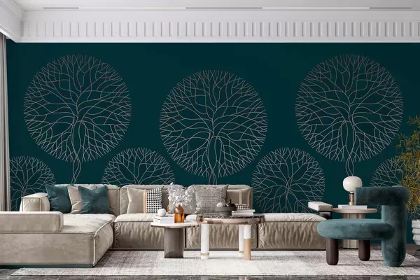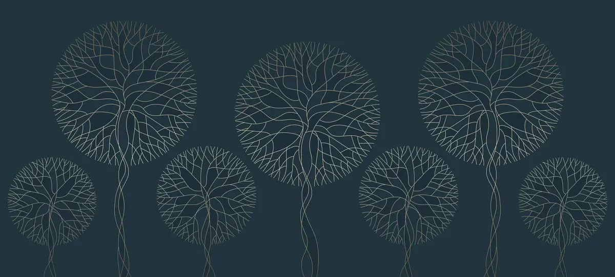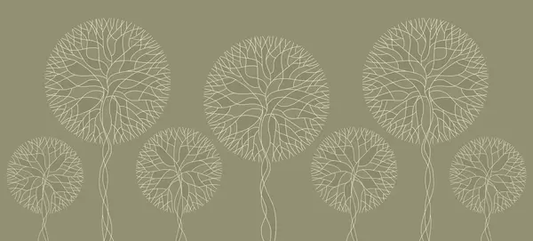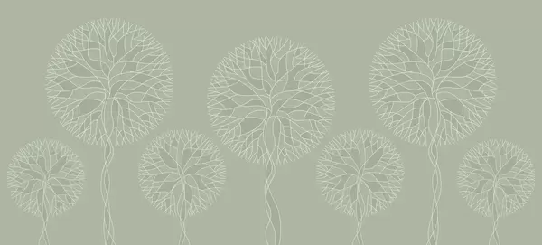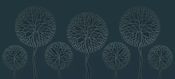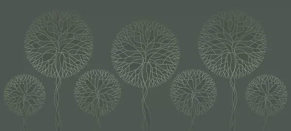 Fototapet Fantastiska linjära träd med frodiga kronor i eleganta mörka smaragdtoner Nr. w05213