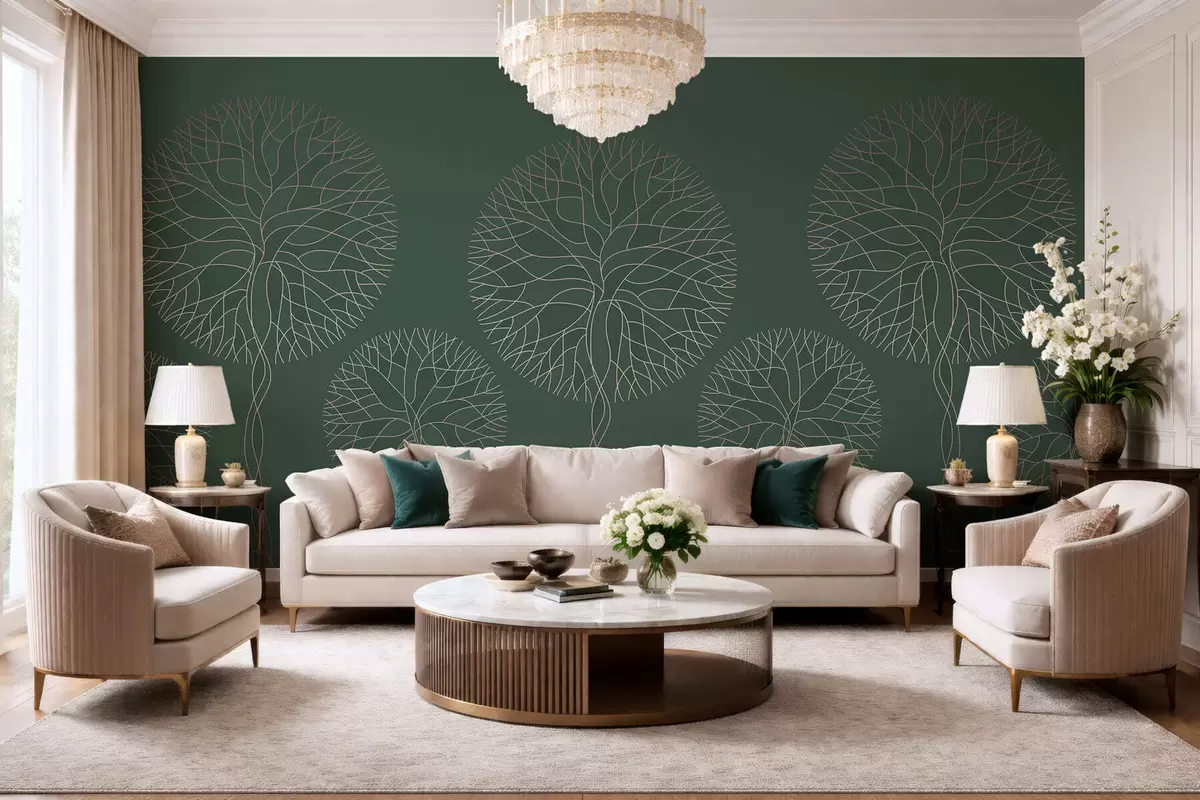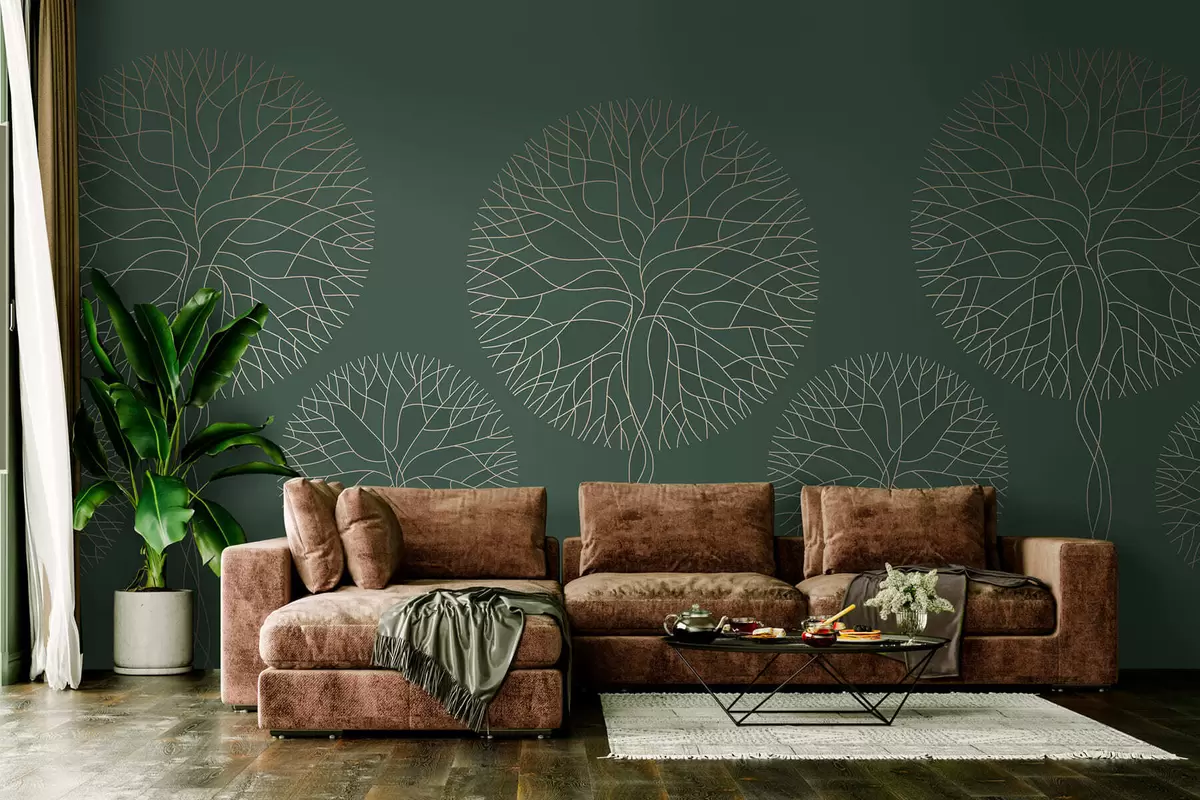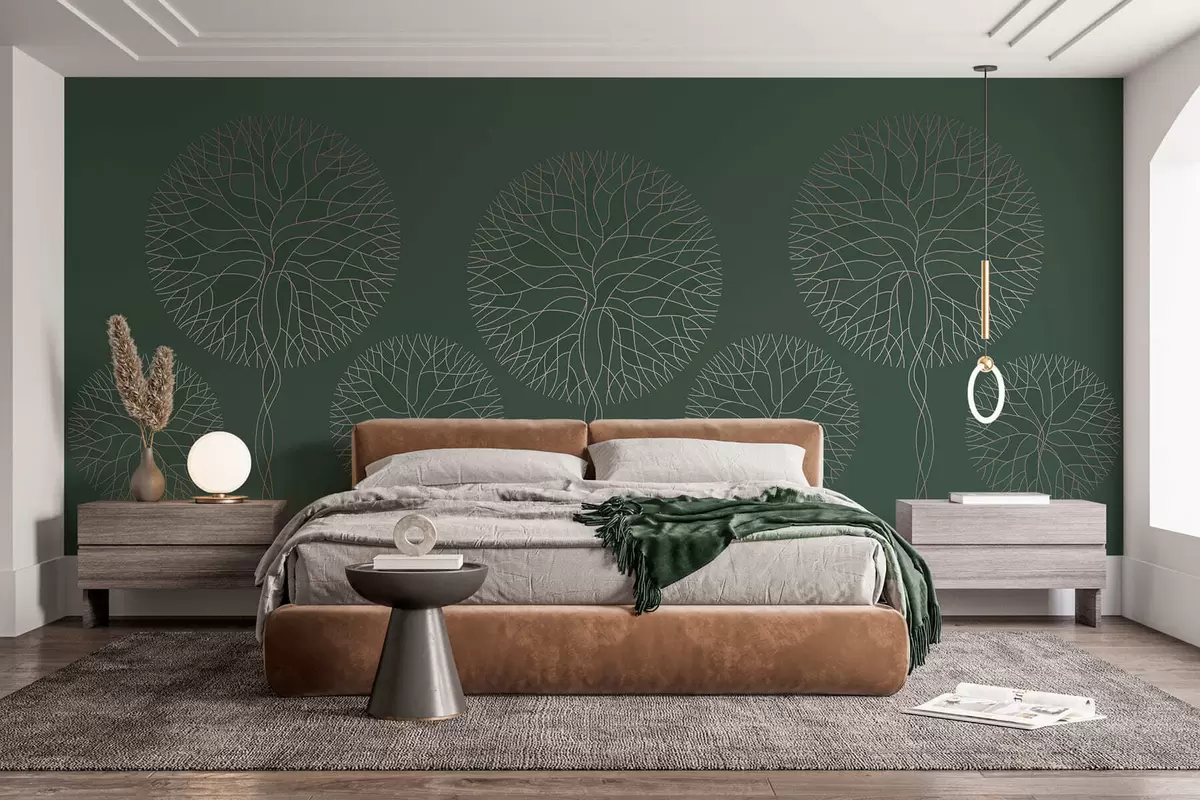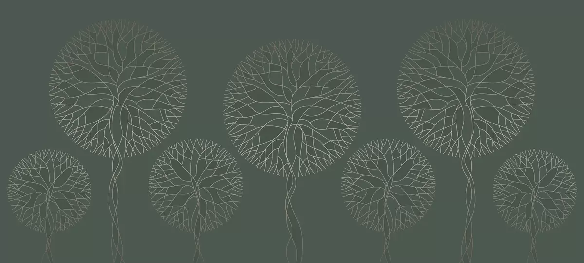 Fototapet Fantastiska linjära träd med frodiga kronor i eleganta mörkgröna nyanser Nr. w05213v2
