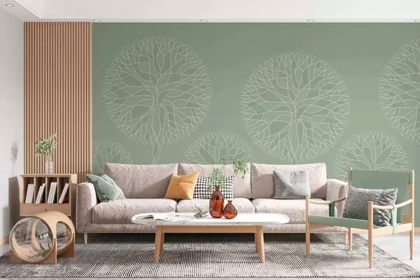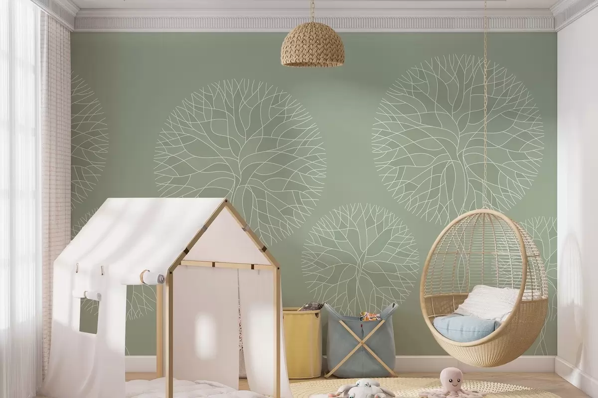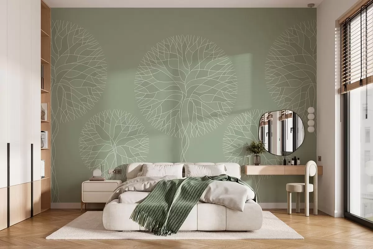 Fototapet Fantastiska linjära träd med frodiga kronor i ljusgröna nyanser Nr. w05213v6