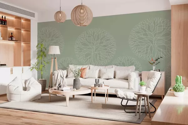 Fototapet Fantastiska linjära träd med frodiga kronor i ljusgröna nyanser Nr. w05213v6