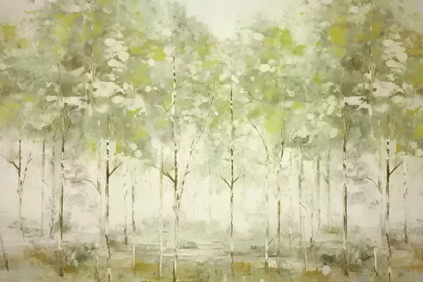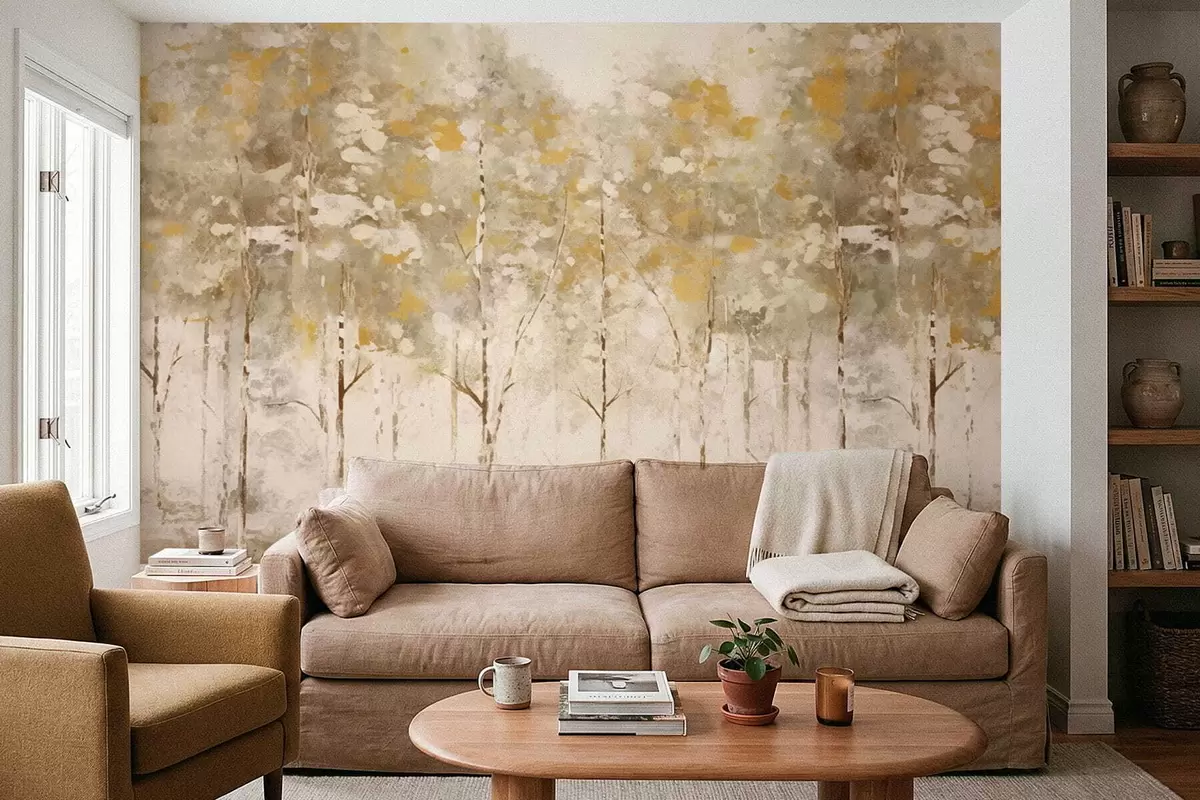 Fototapet Stiliserad skog med smala träd i varma toner Nr. w05221