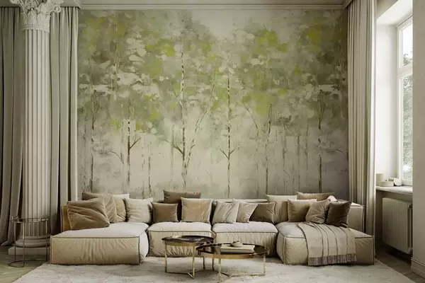 Fototapet Stiliserad skog med smala träd i gröna nyanser Nr. w05221v1