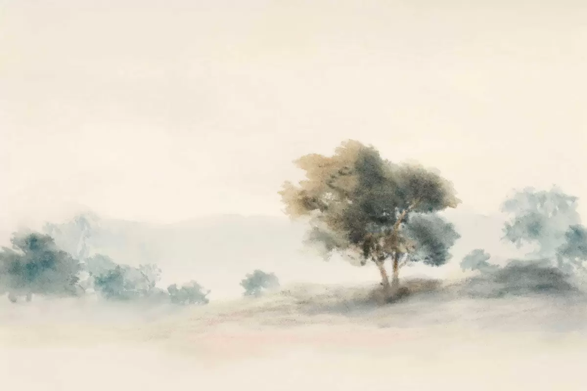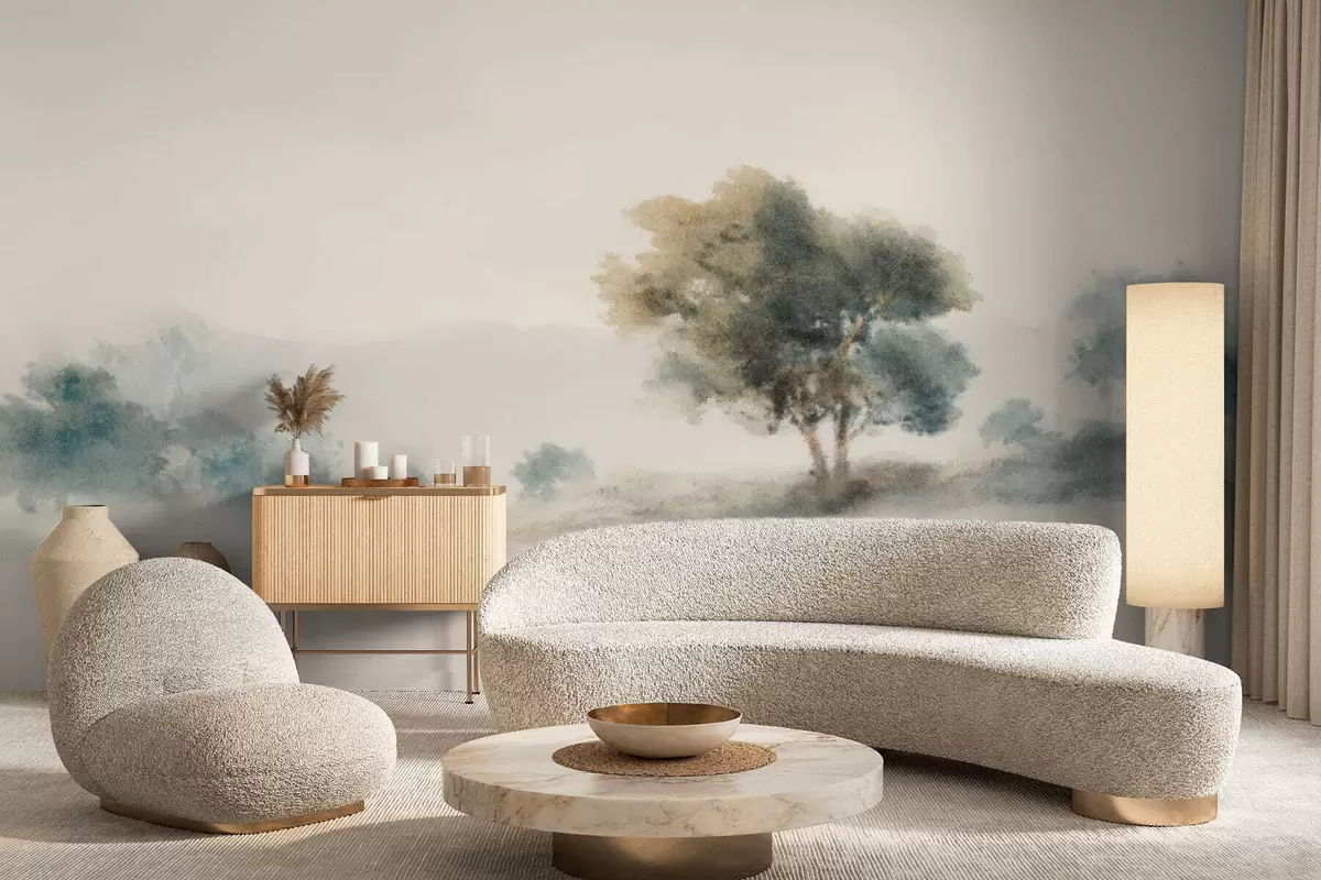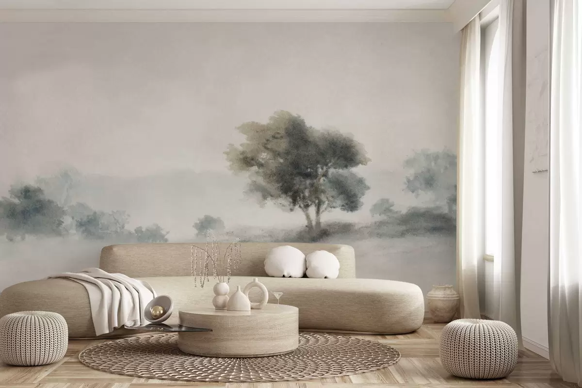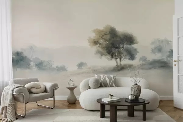Fototapet Lugnt landskap med ett träd och mjuka suddiga former Nr. w05223v1