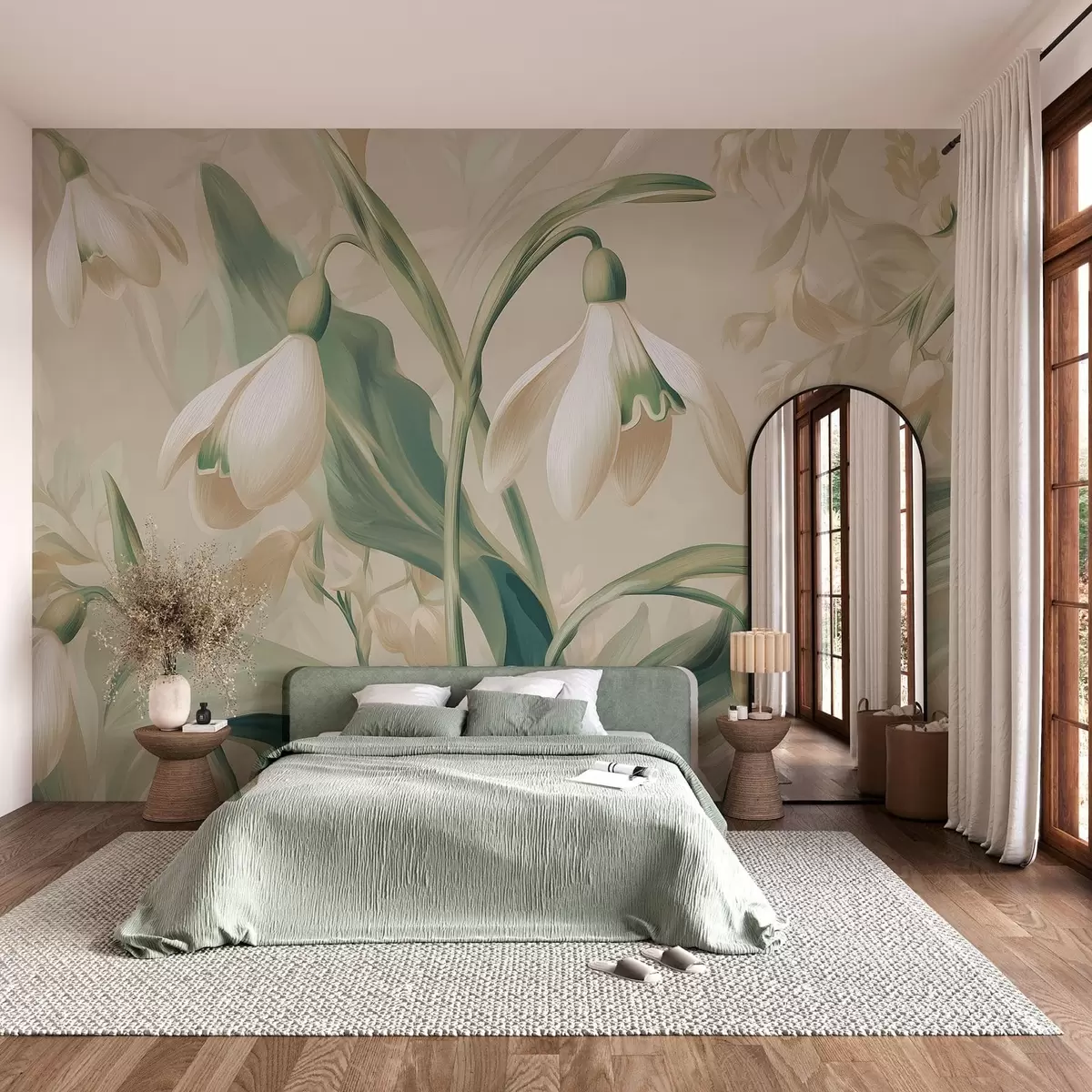 Fototapet blommande snödroppar på beige bakgrund Nr. w05234