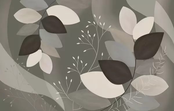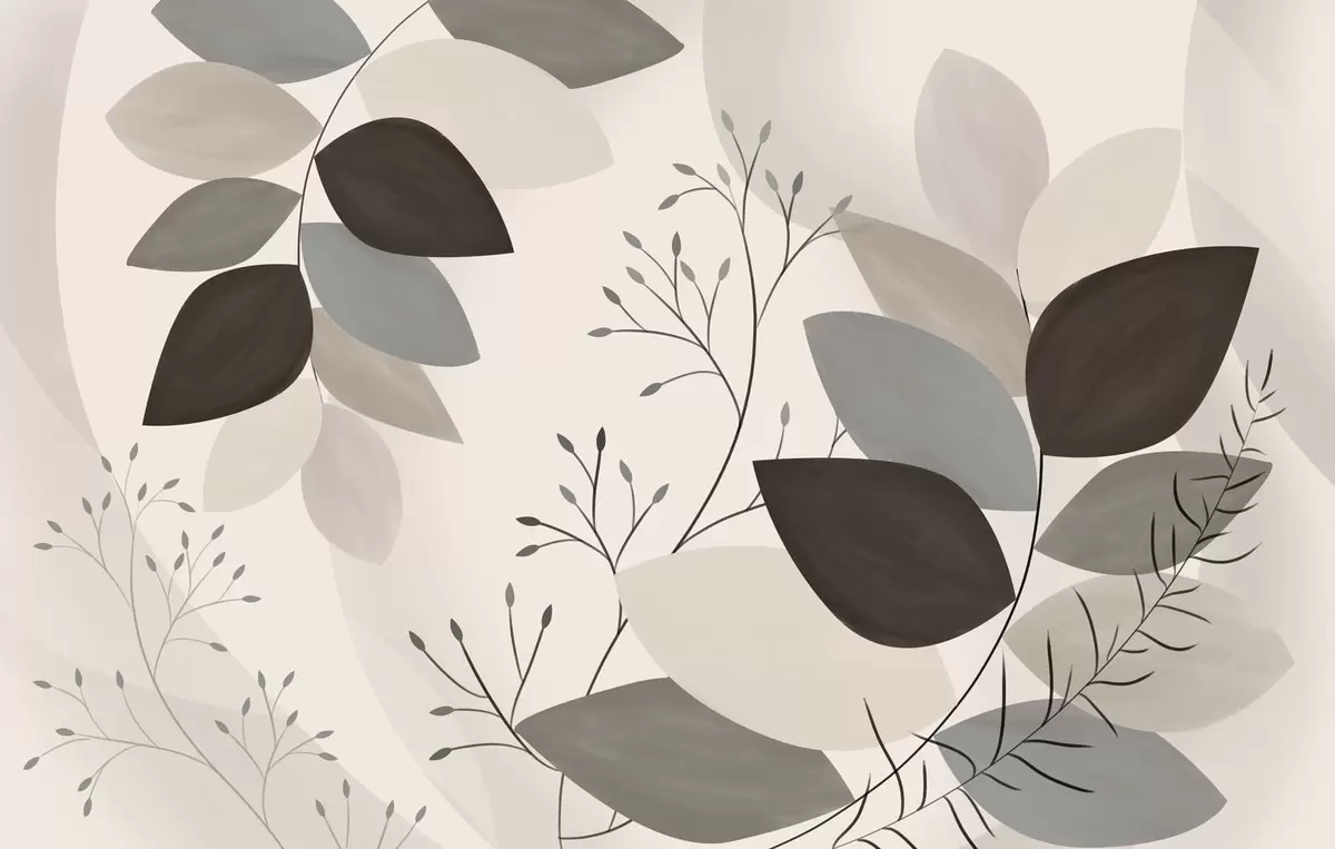 Fototapet löv och gräs i nyanser av beige, grått och brunt Nr. w05237