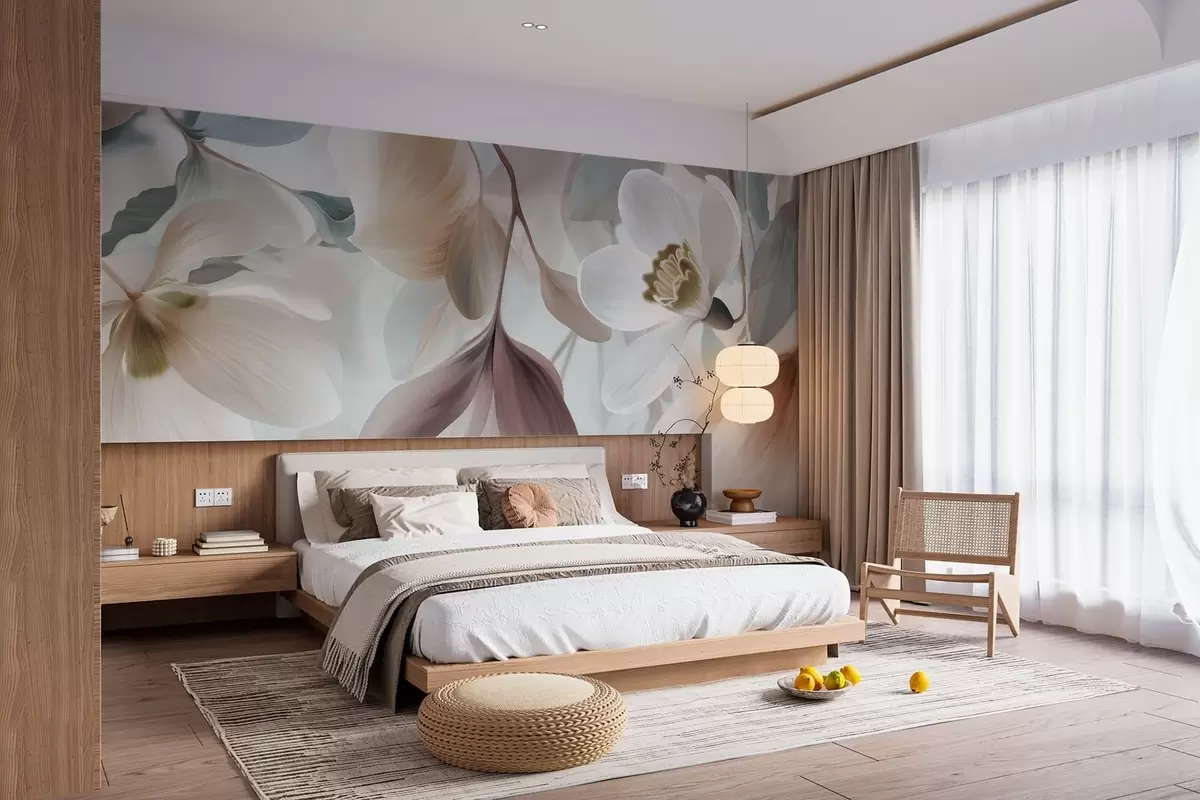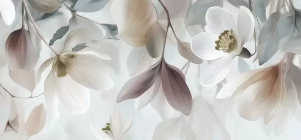 Fototapet en fin komposition av blommor och blad i pastellfärger Nr. w05240