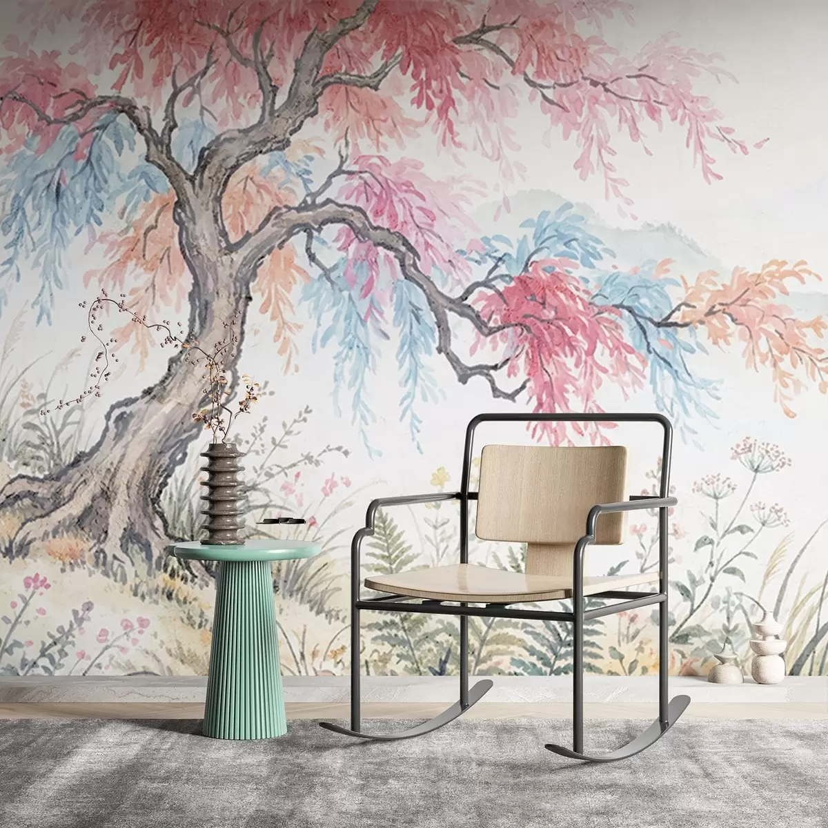 Fototapet Målad färgglad trädgård på betongvägg Nr. w05246