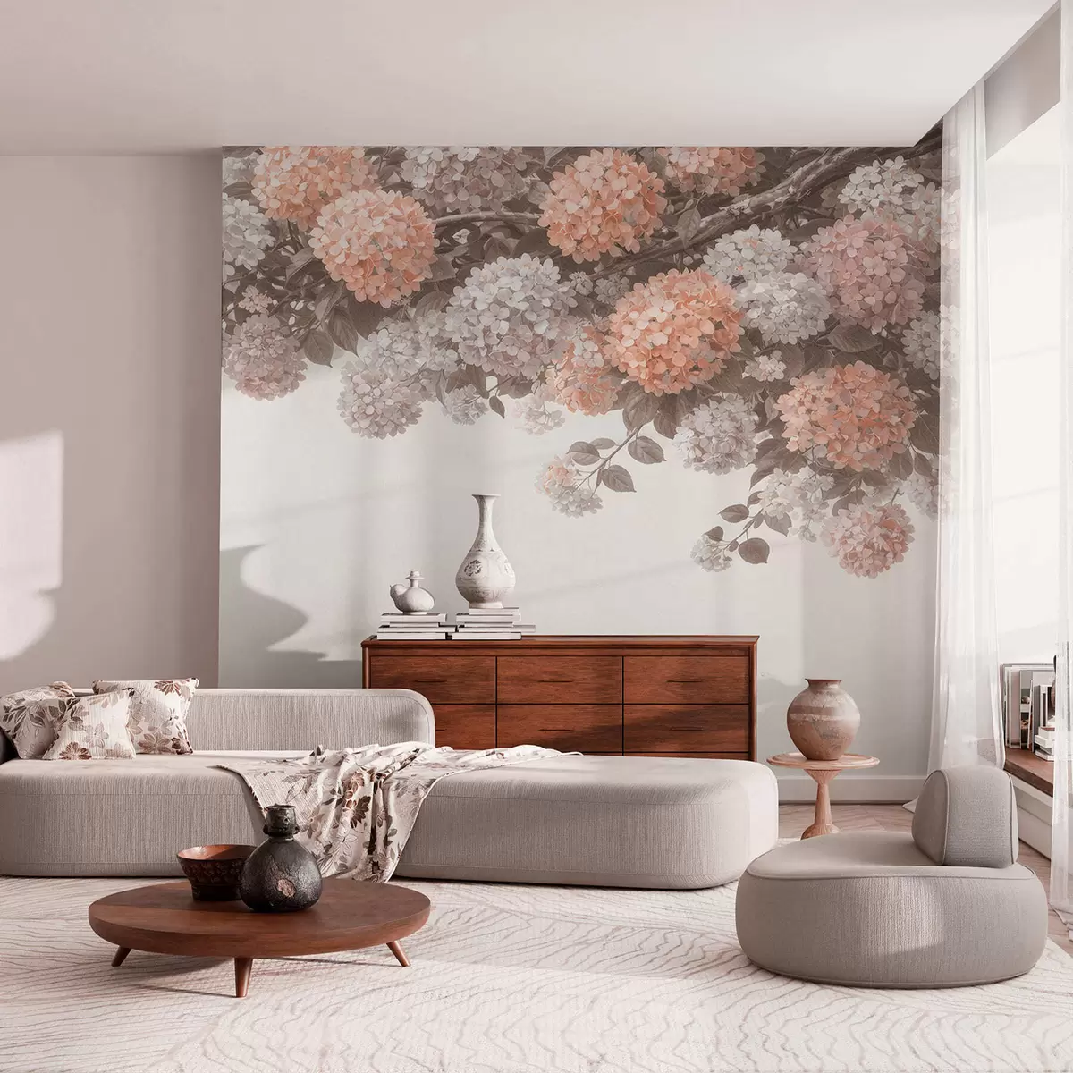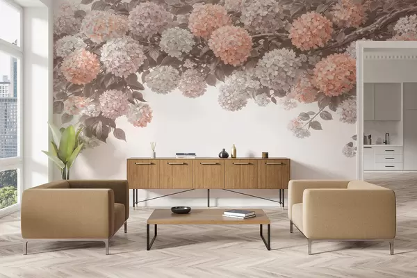 Fototapet Målade hortensior hänger ner Nr. w05250v1