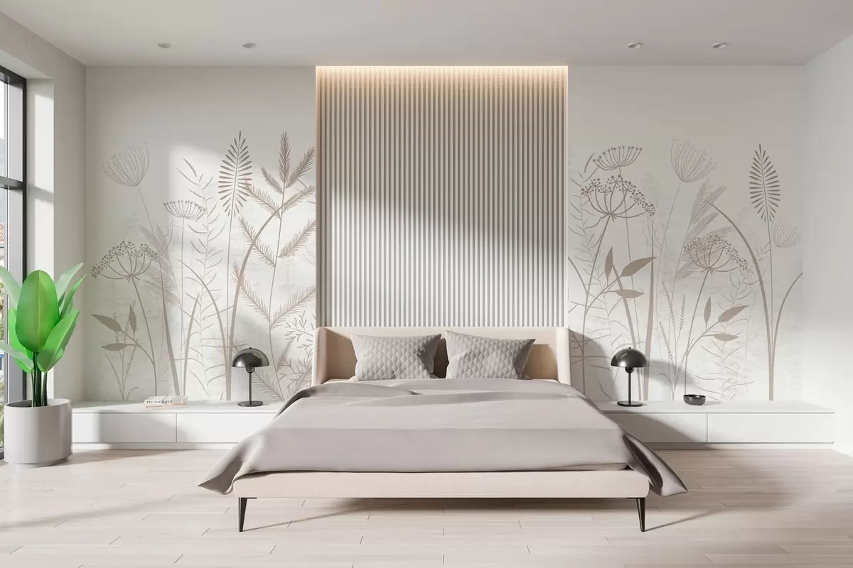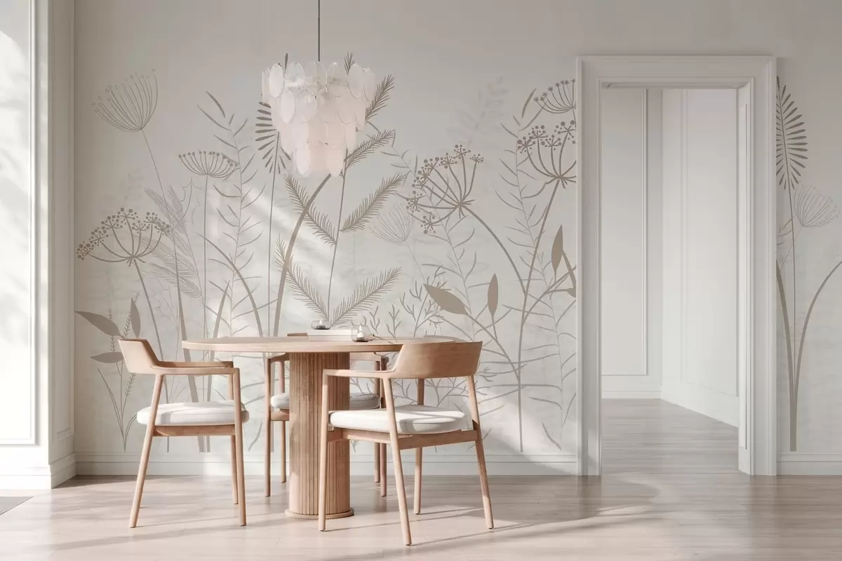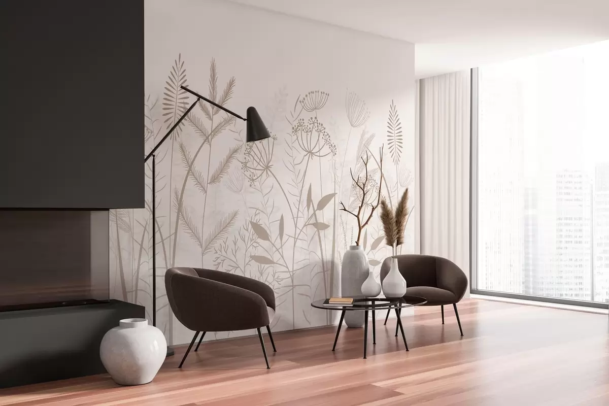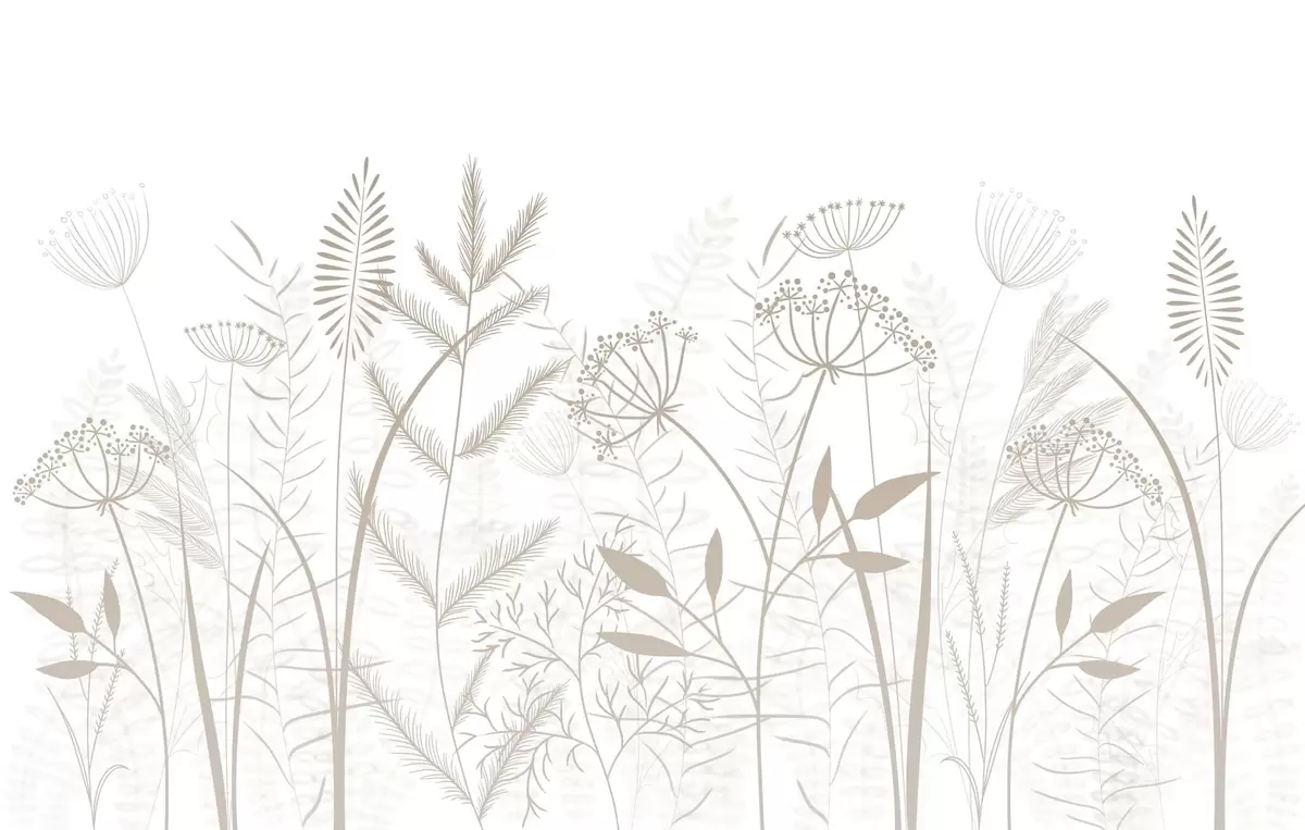 Fototapet fina handmålade vilda gräs och blommor mot en vit bakgrund Nr. w05383v2