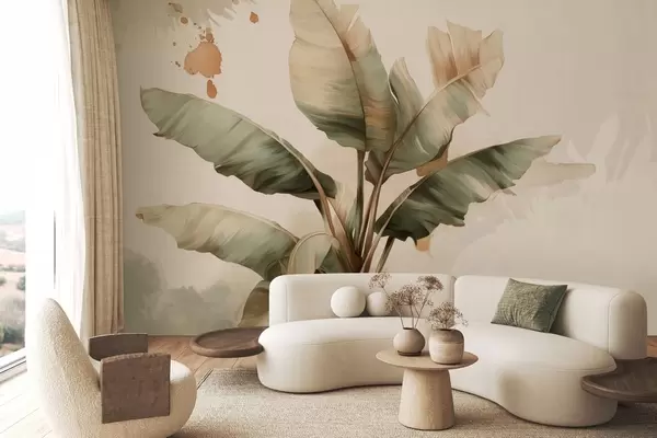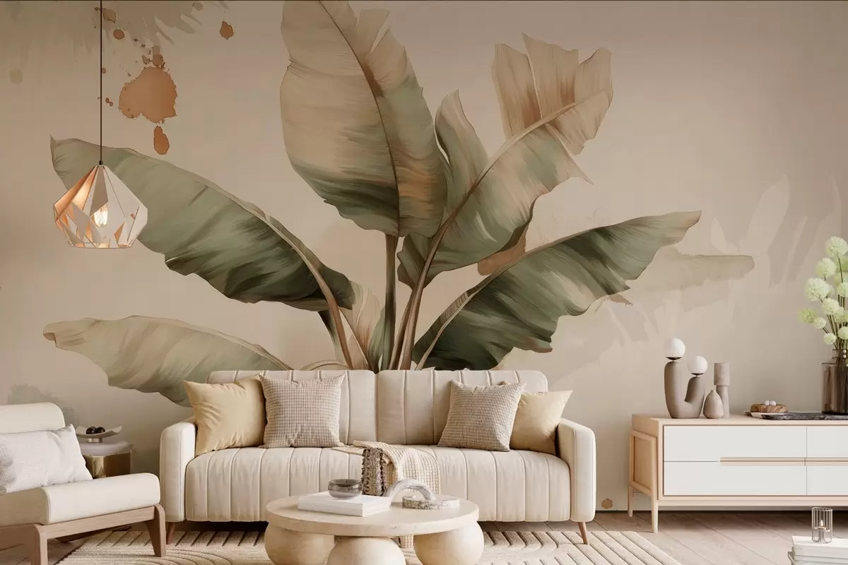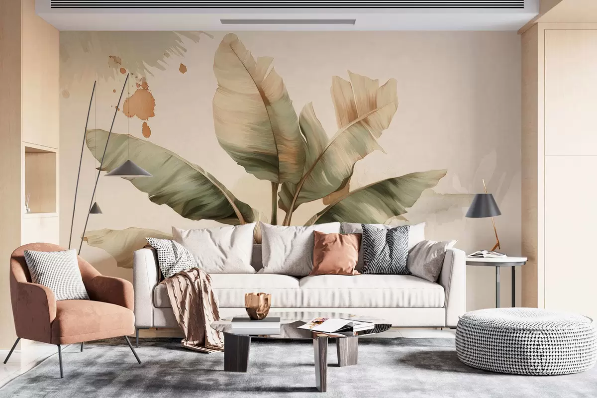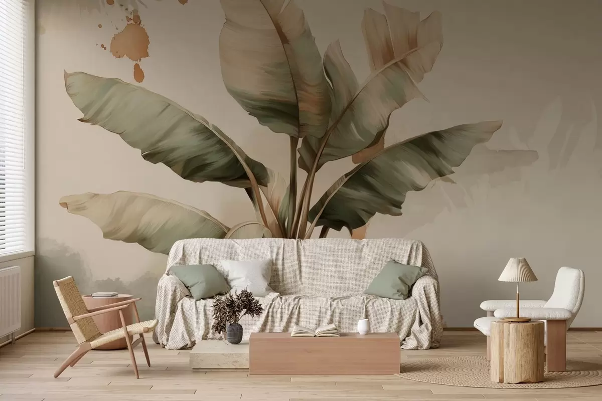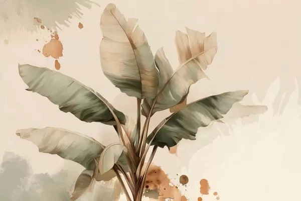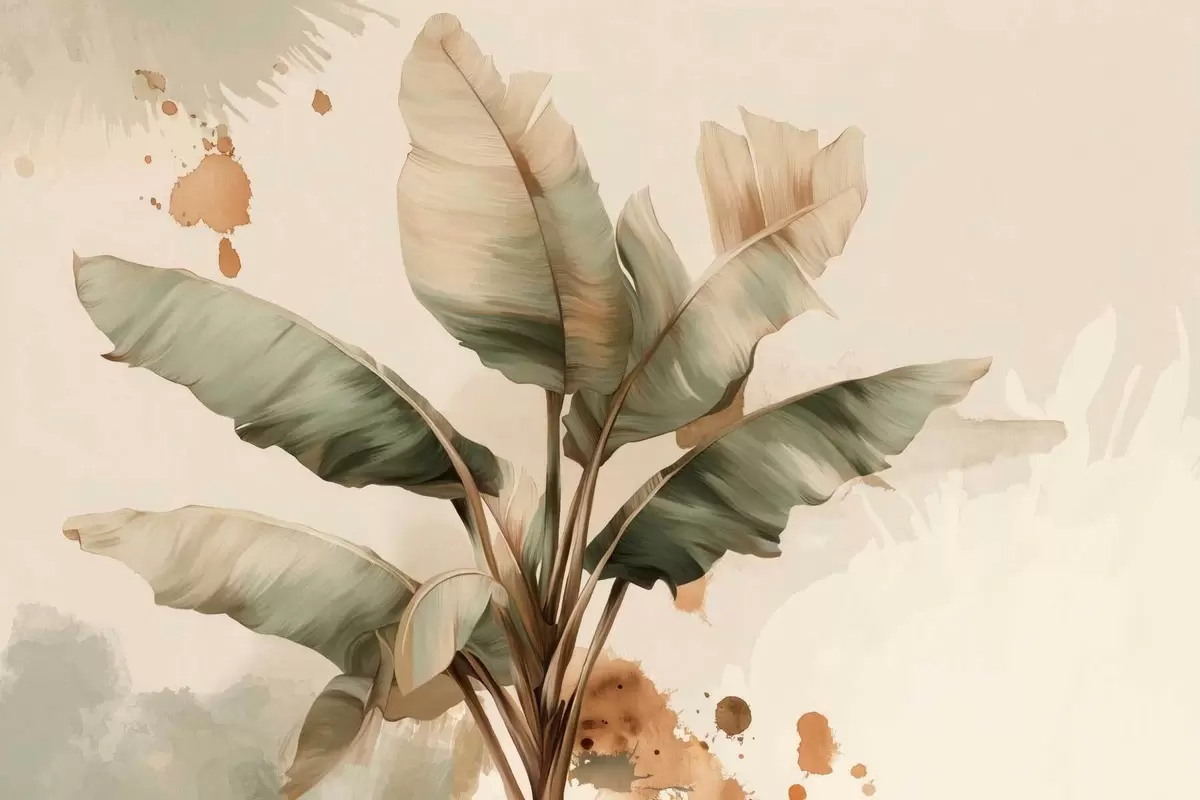 Fototapet en stor, pittoresk klunga av bananblad med stänk i retrostil Nr. w05384