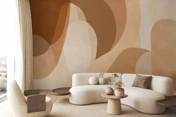 Fototapet abstrakta kurvor i bruna, beige och rödbruna nyanser Nr. w05387