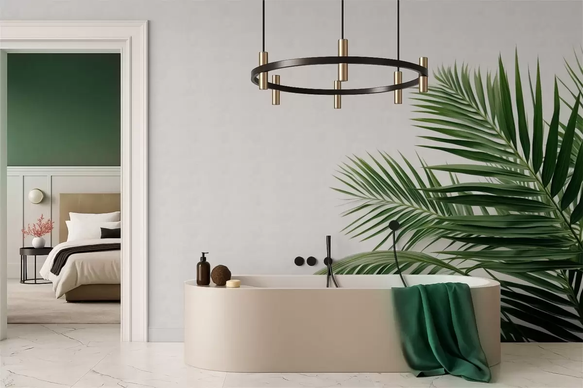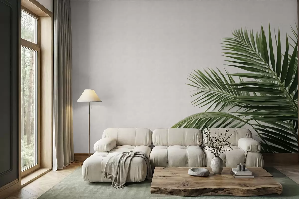 Fototapet Gröna palmblad mot en ljus bakgrund Nr. w05391