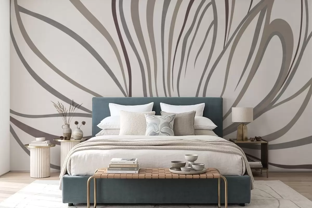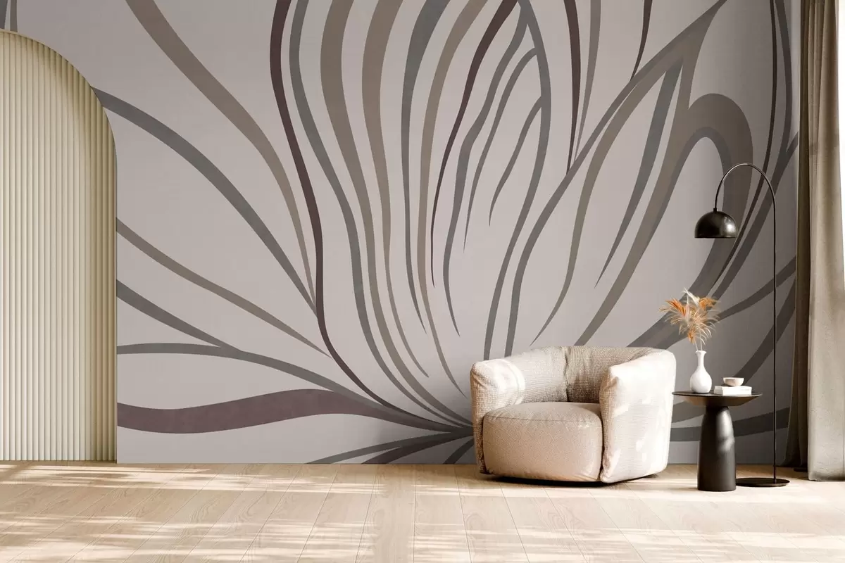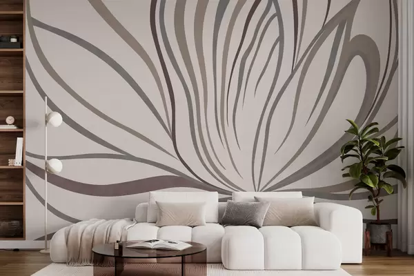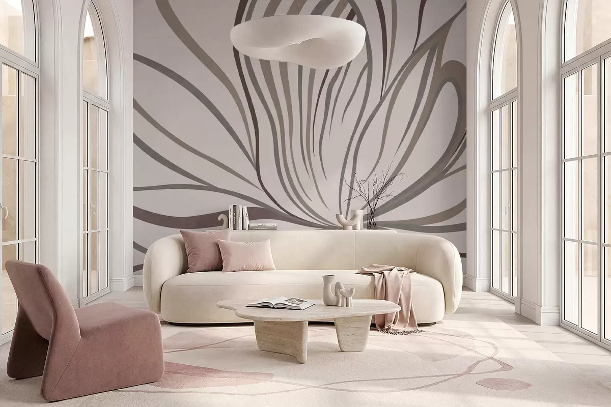 Fototapet Abstrakt blomma med linjer i grå och rosa nyanser Nr. w05392