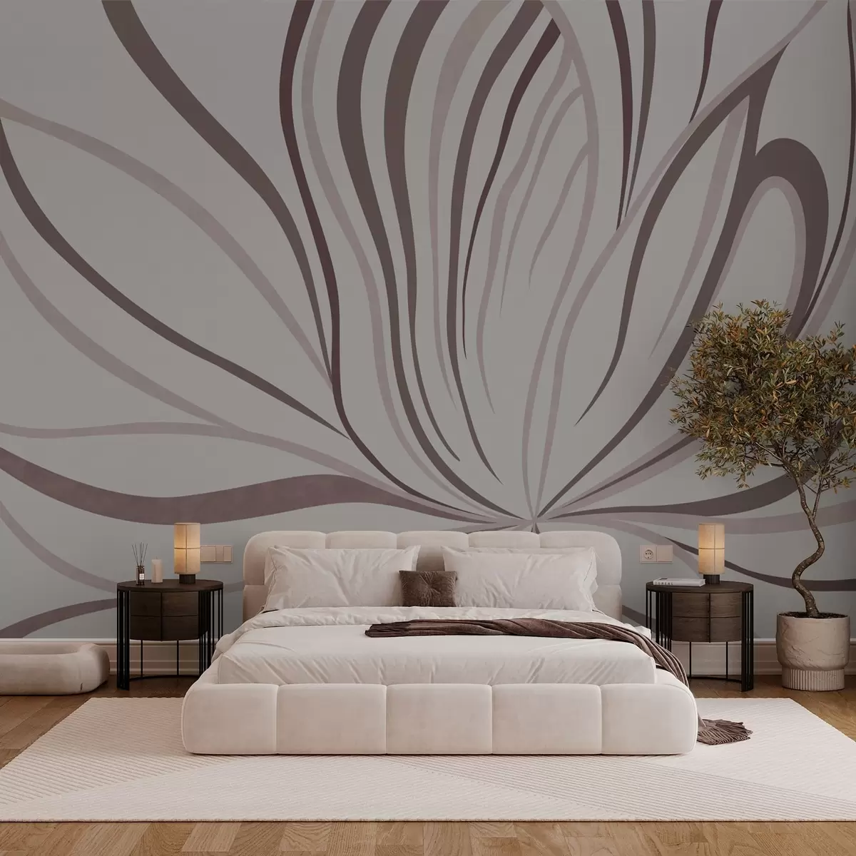 Fototapet En stiliserad blomma med mjuka linjer i rosa och beige nyanser Nr. w05392v1