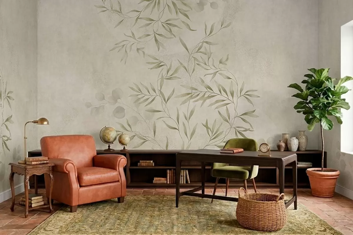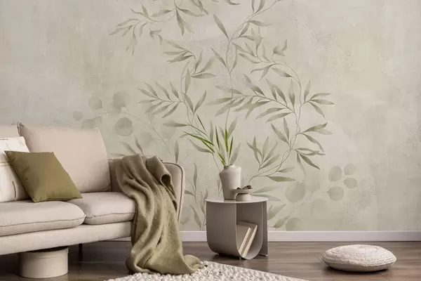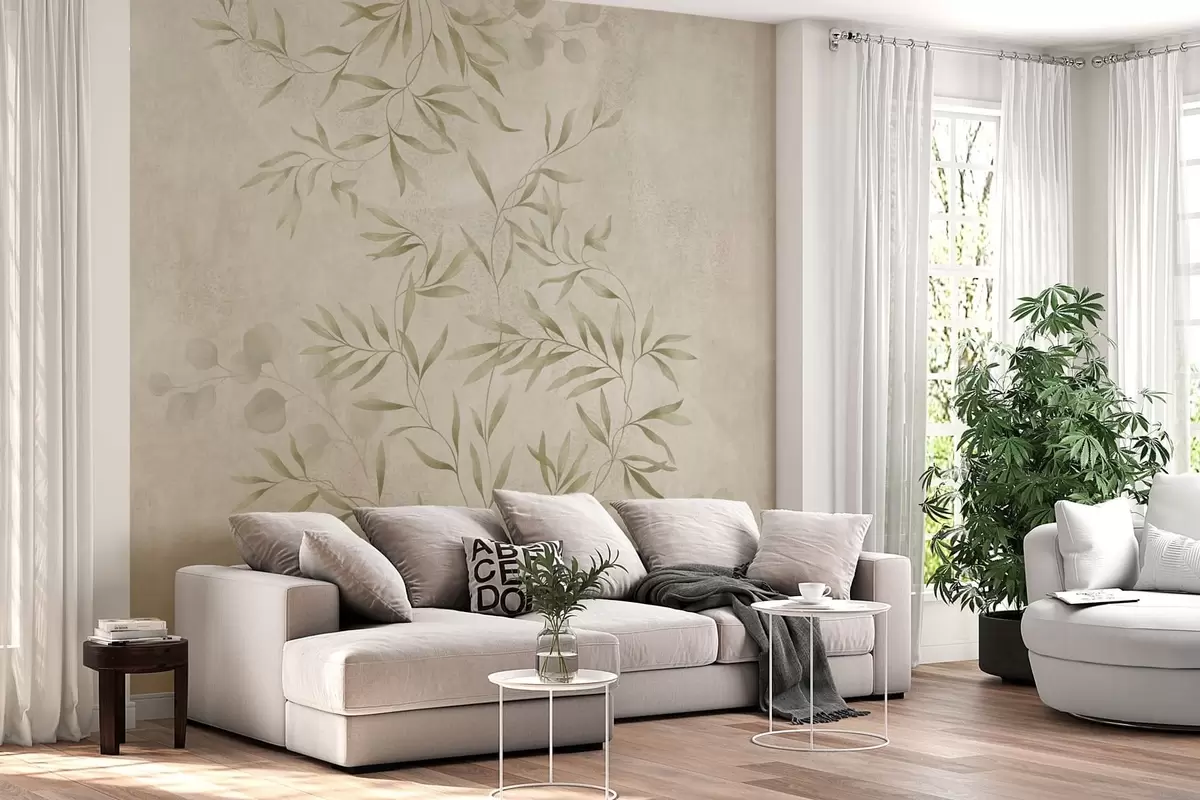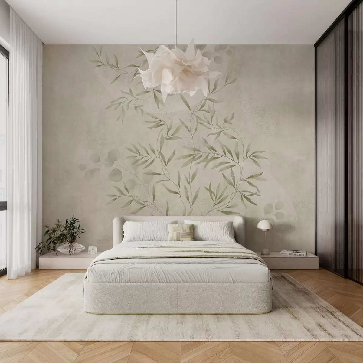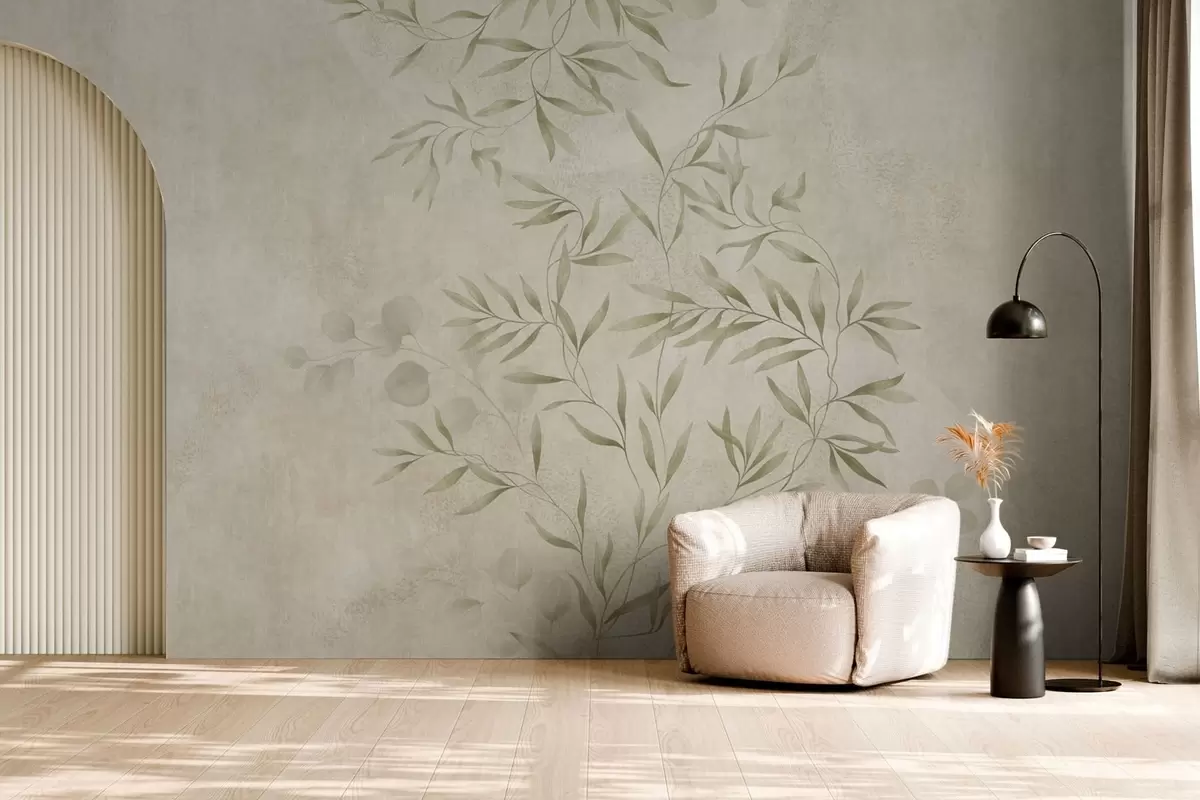 Fototapet Botaniskt mönster i ljusgröna nyanser på en strukturerad bakgrund Nr. w05424v1