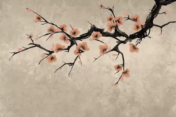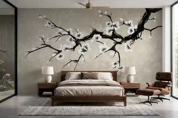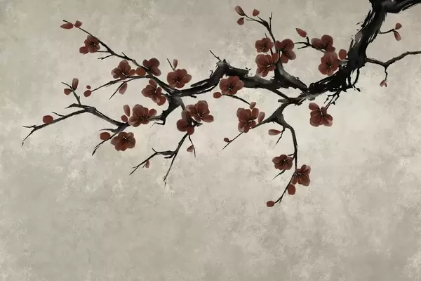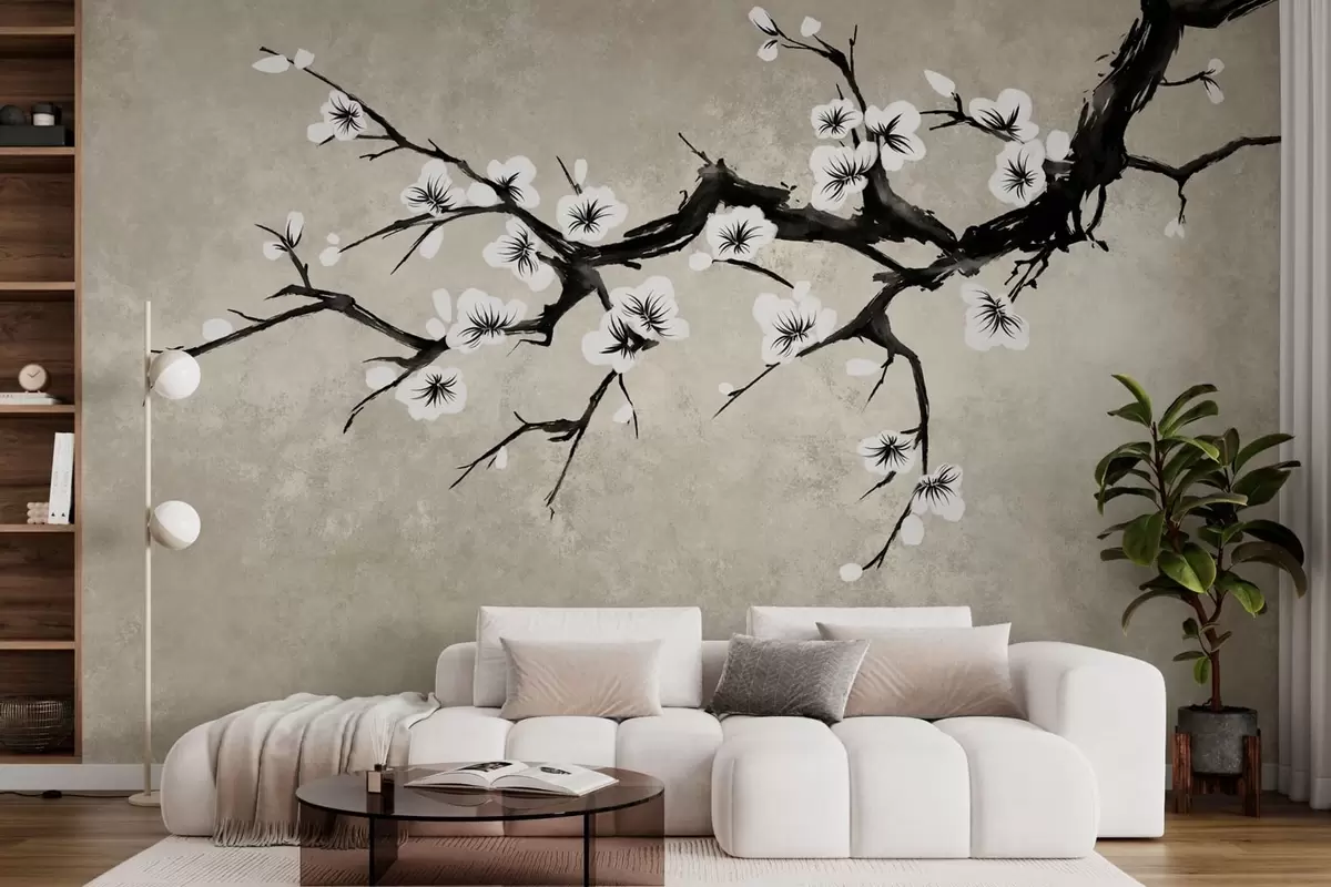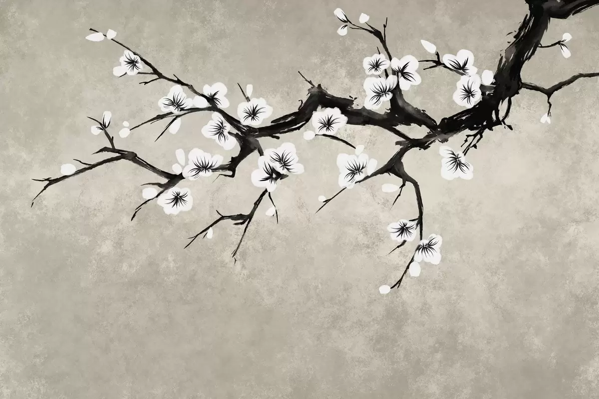 Fototapet En gren med vita blommor i minimalistisk stil Nr. w05425