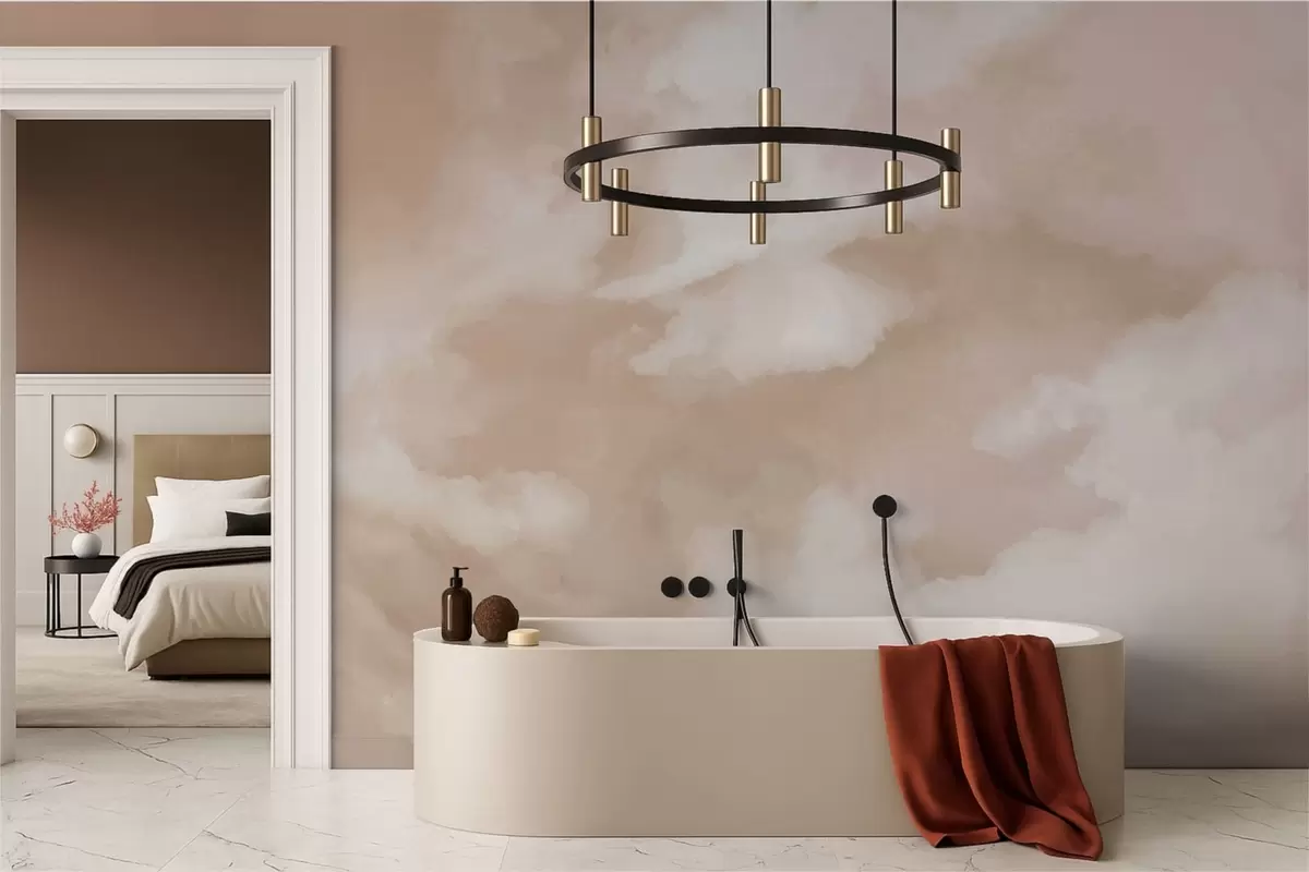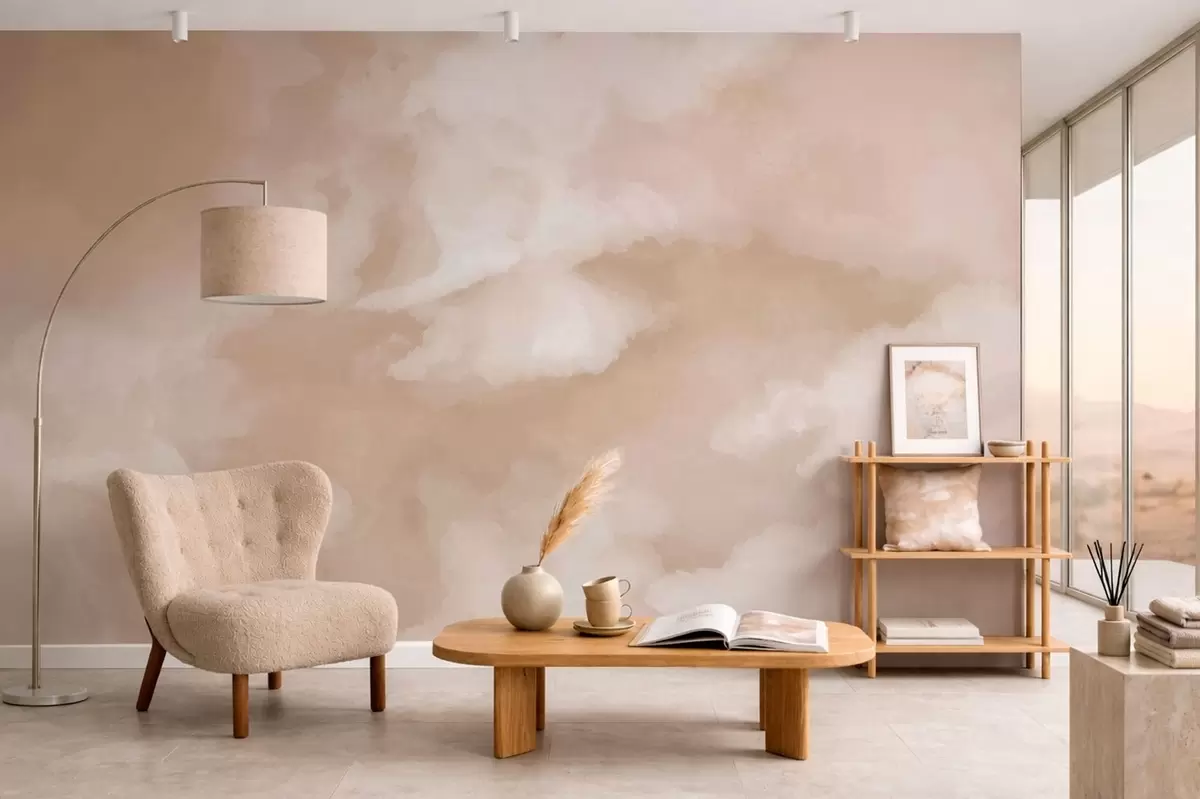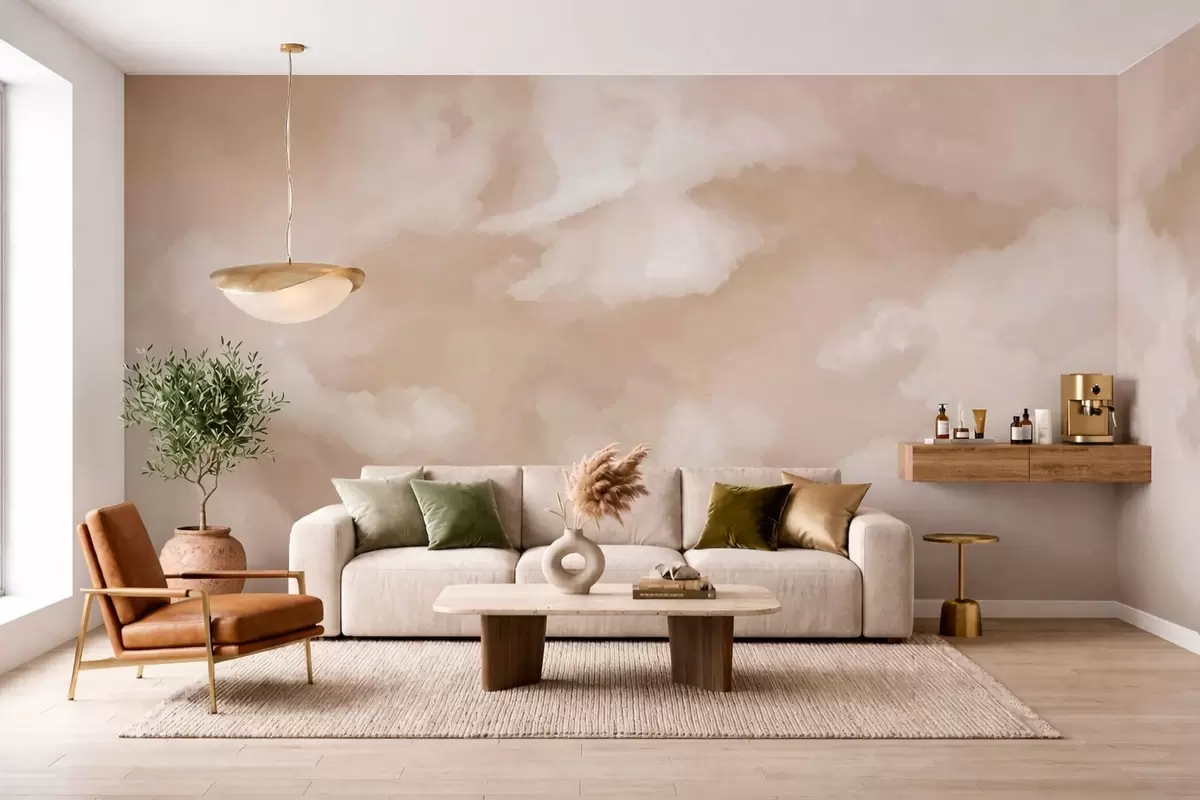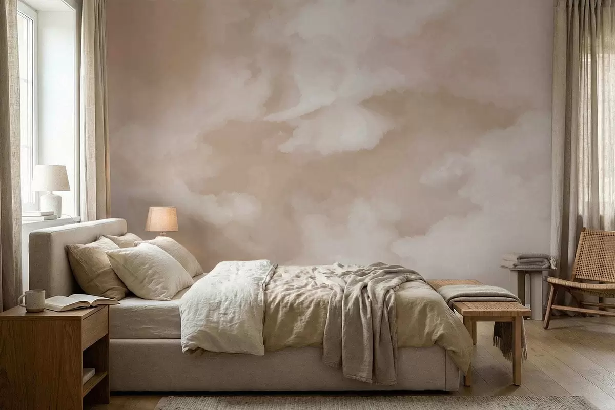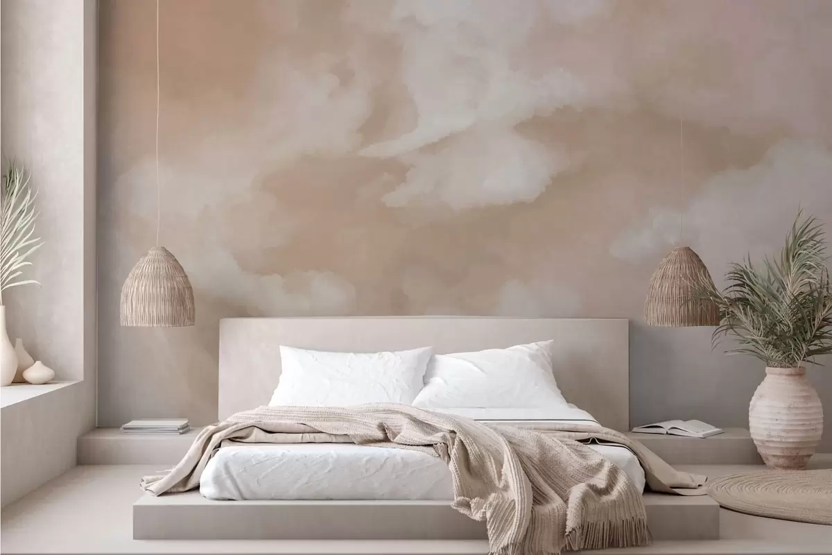 Fototapet En mjuk, molnig bakgrund i varma beige toner Nr. w05426