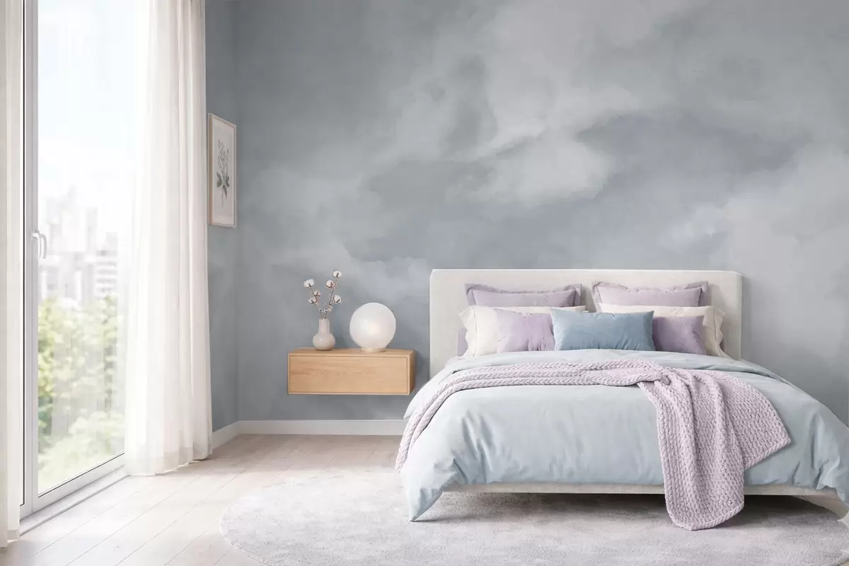 Fototapet En mjuk, molnig bakgrund i ljusgrå nyanser Nr. w05426v1