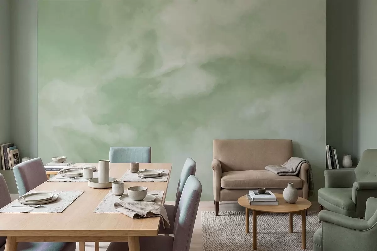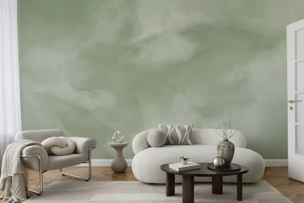 Fototapet En mjuk, molnig bakgrund i mjuka gröna nyanser Nr. w05426v2