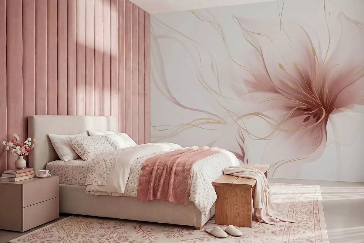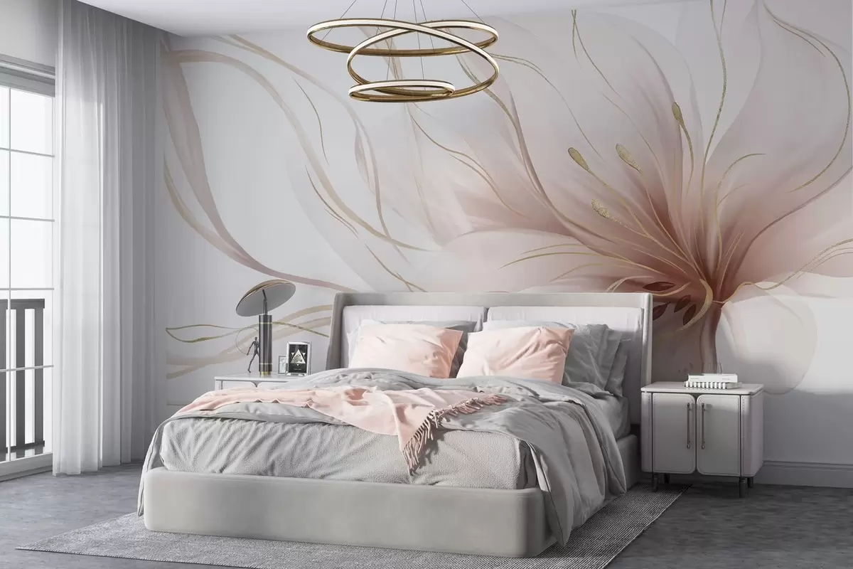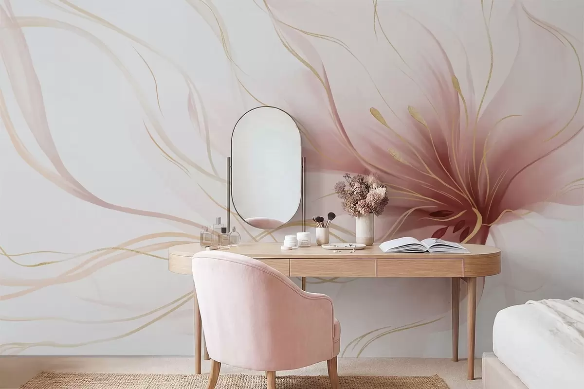 Fototapet En abstrakt rosa blomma med böljande linjer i Fluid Art-stil Nr. w05428v1