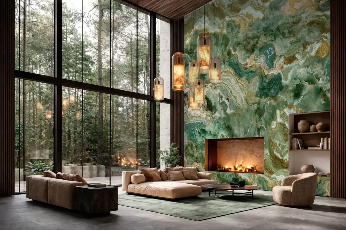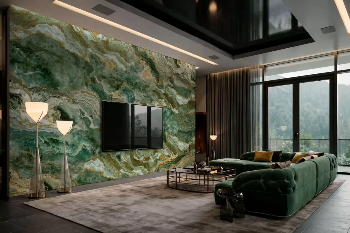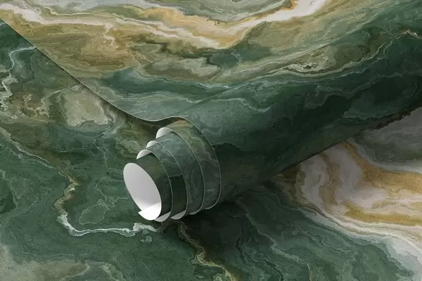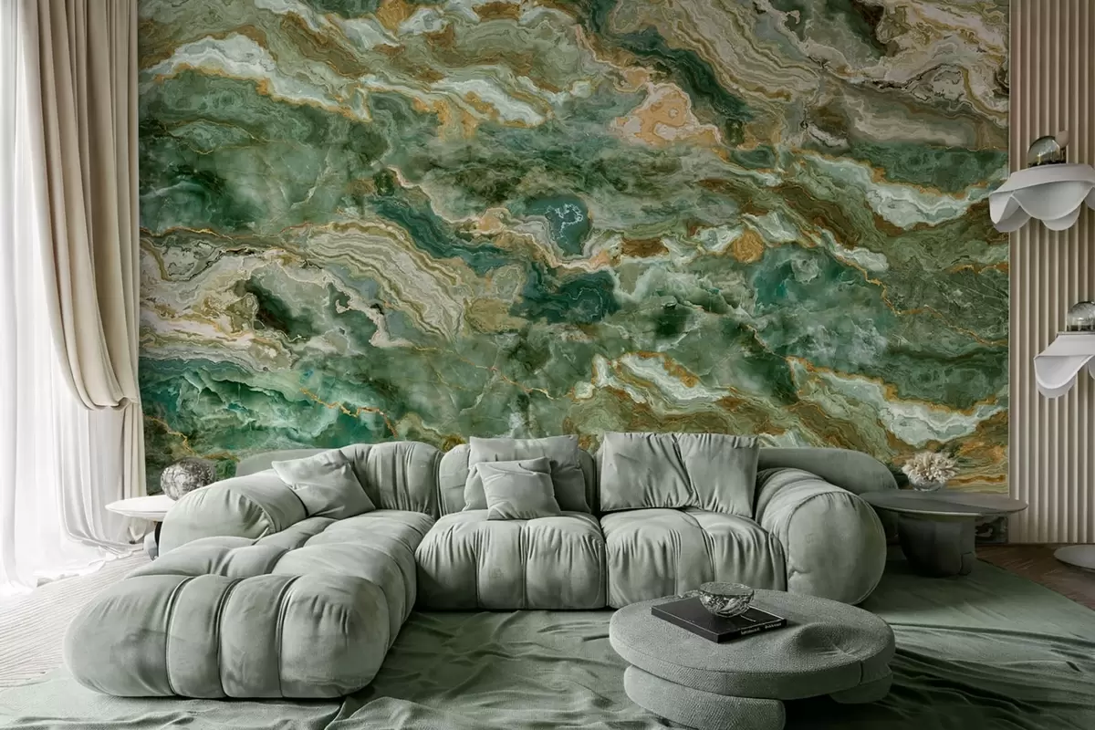 Fototapet Grön onyxstruktur med böljande, skiktade ådringar Nr. w05429