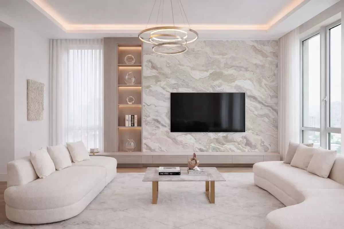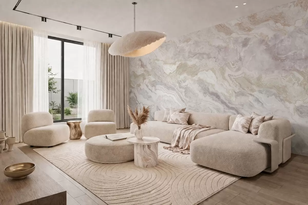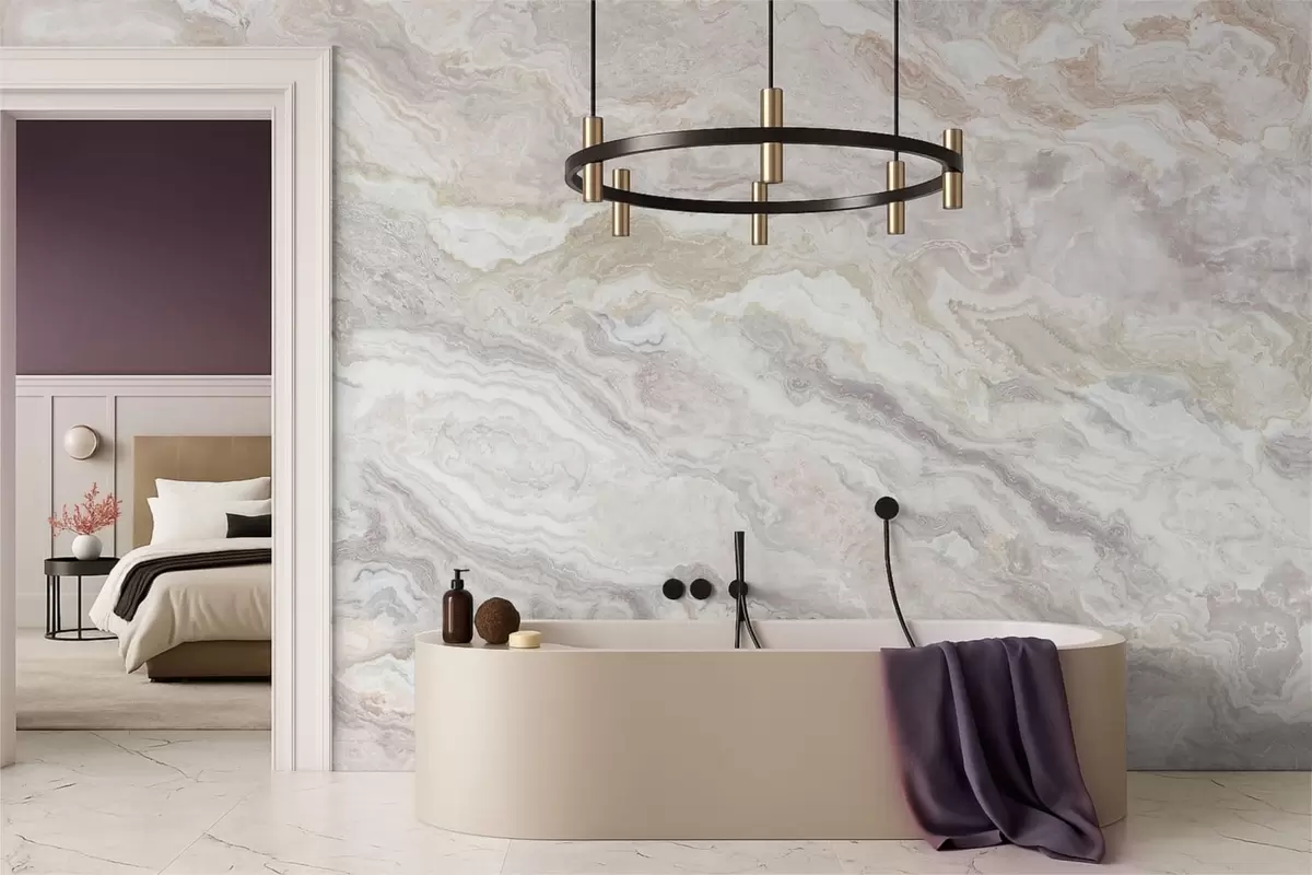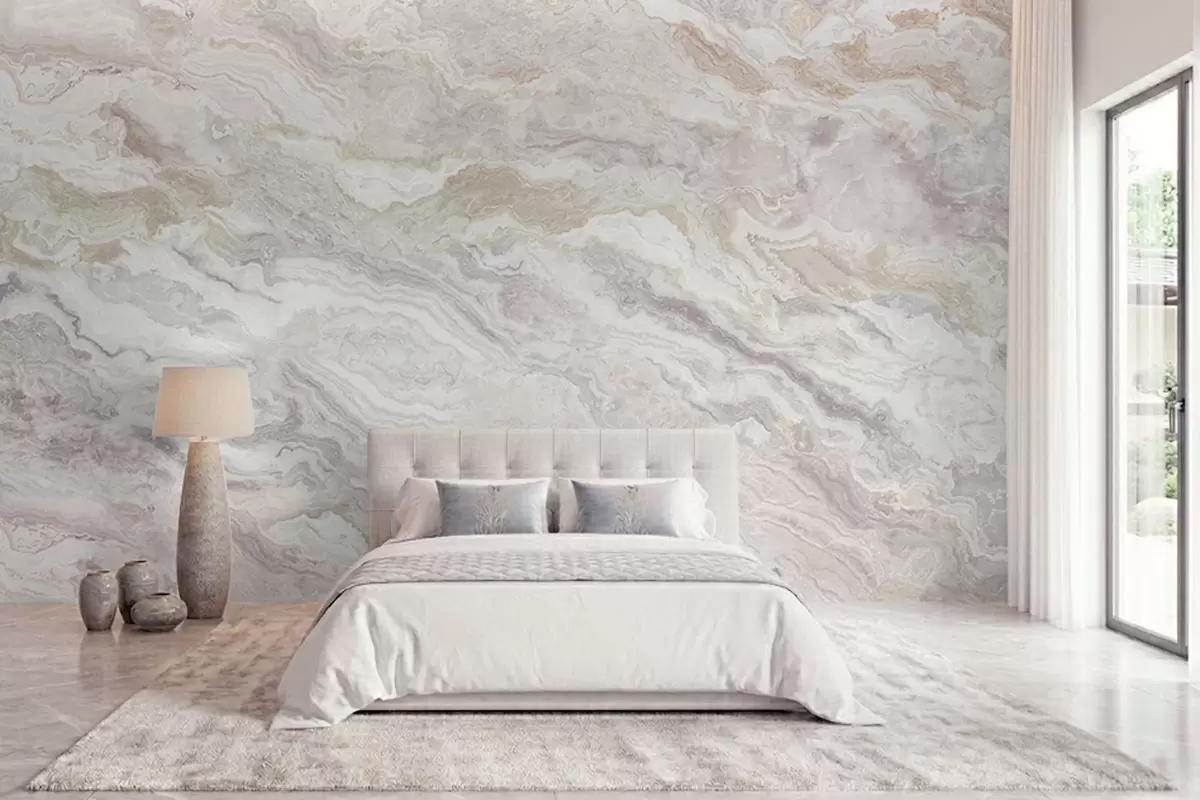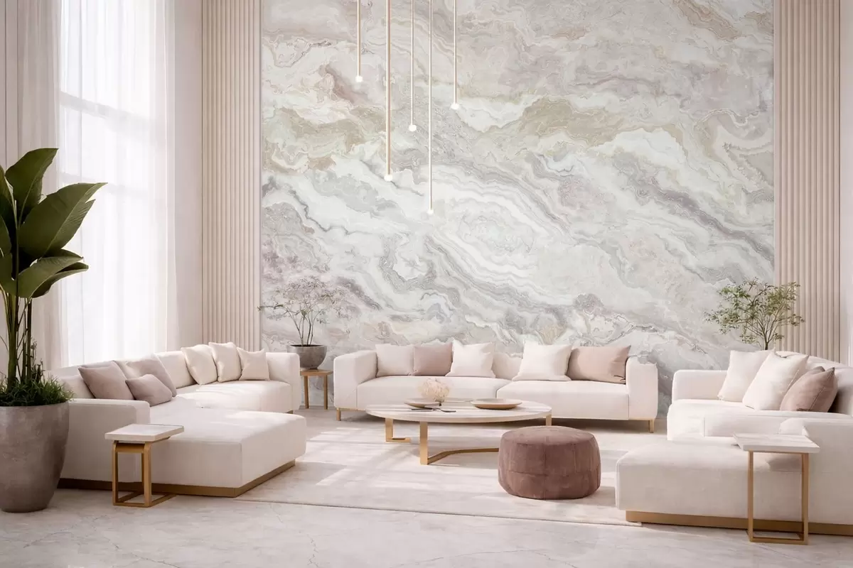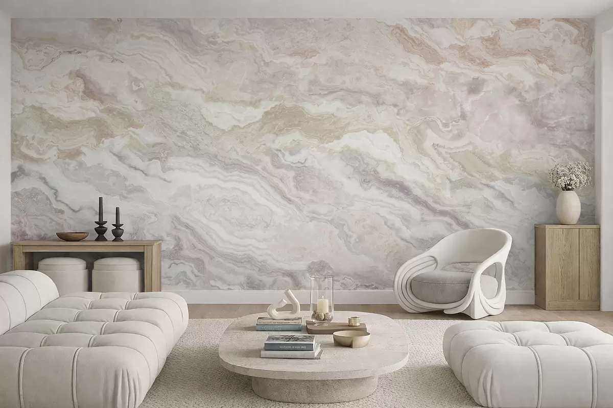 Fototapet Ljus onyx med flödande lager i beige och grått Nr. w05430