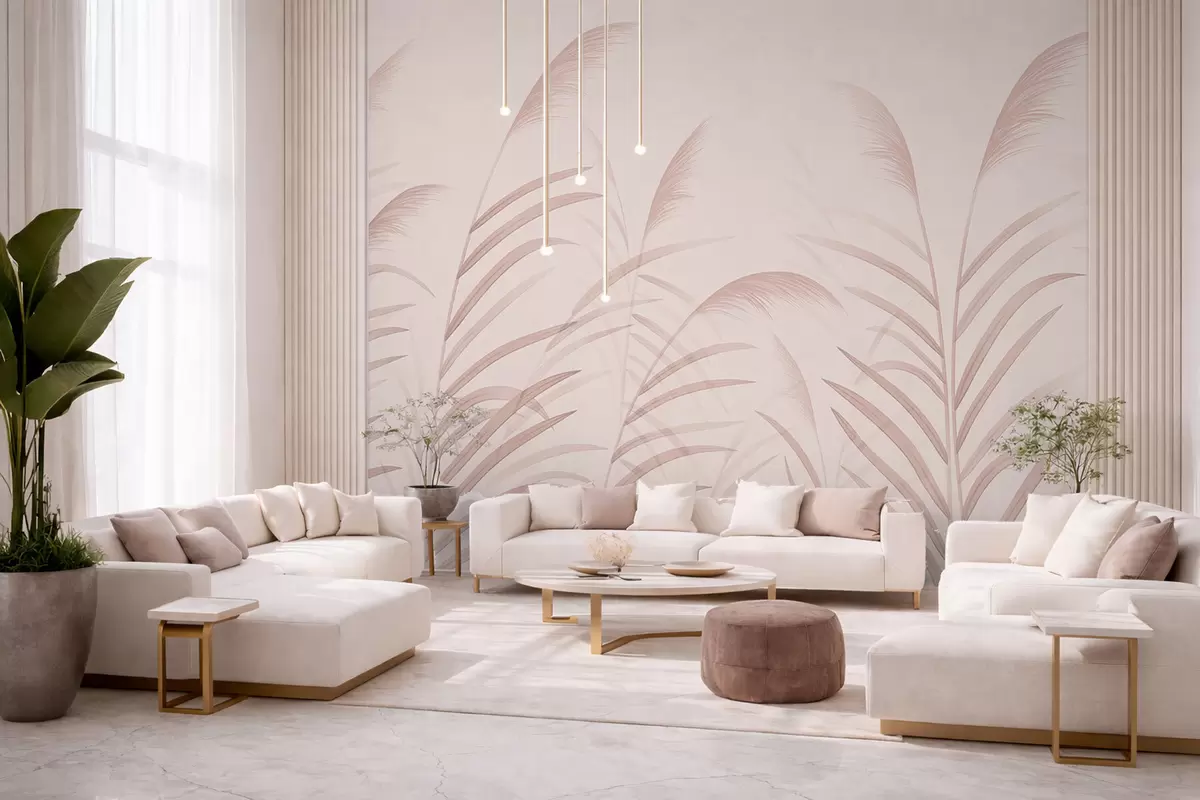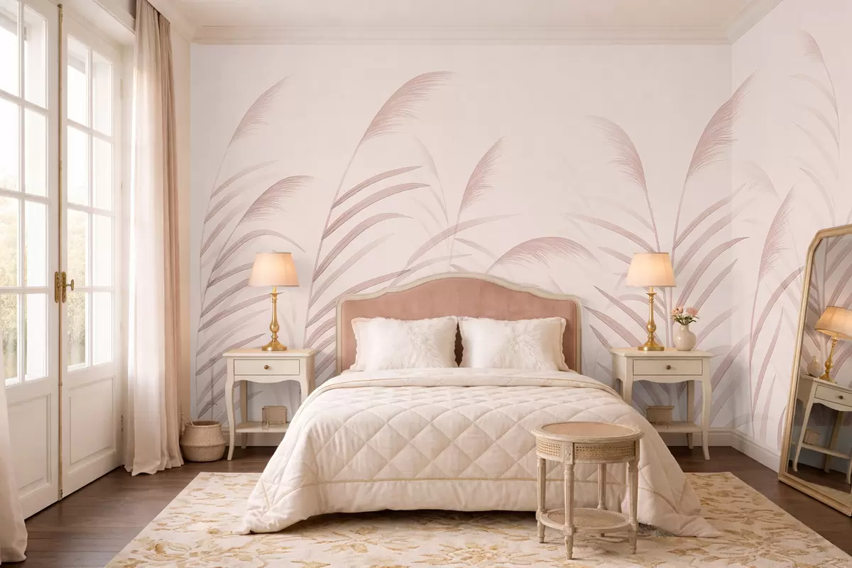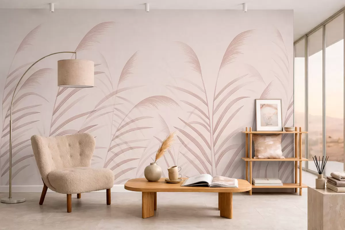 Fototapet Minimalistiska gräs i mjuka rosa nyanser Nr. w05432v2