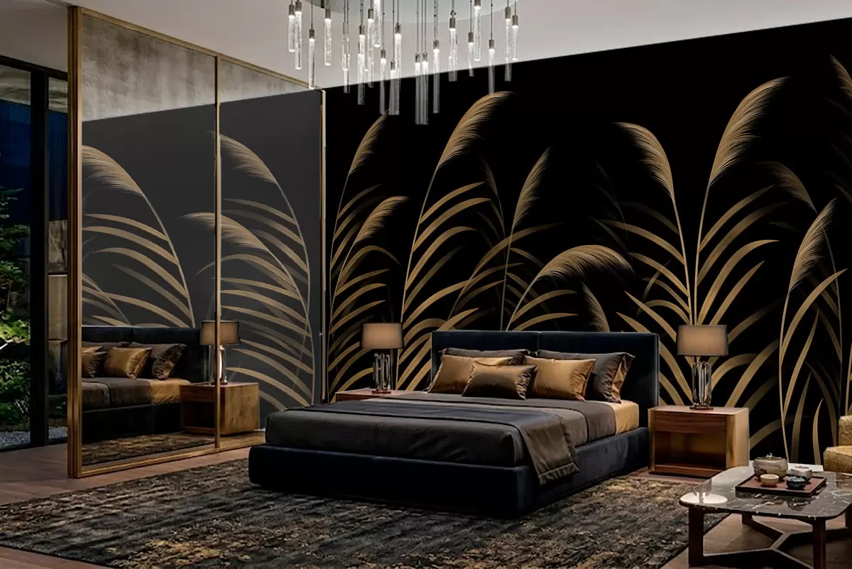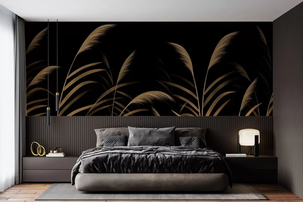 Fototapet Minimalistiska gräs mot mörk bakgrund med hög kontrast Nr. w05432v3