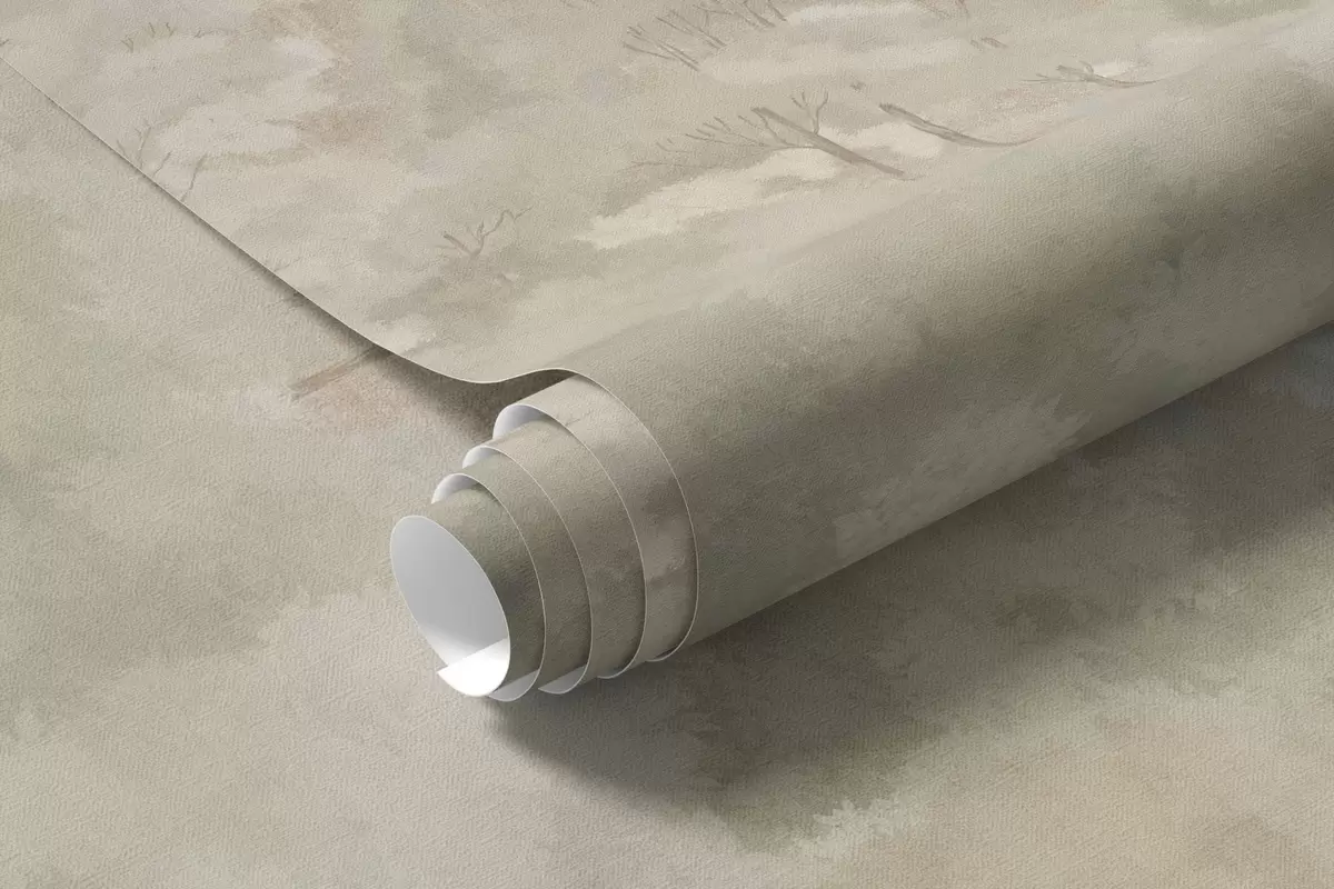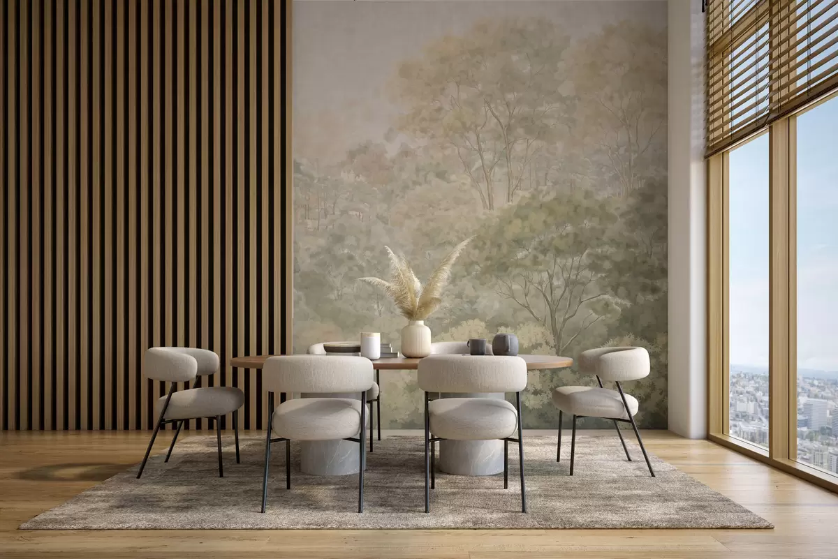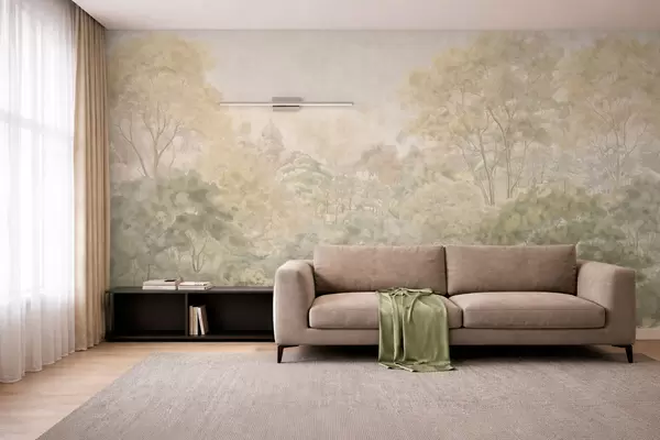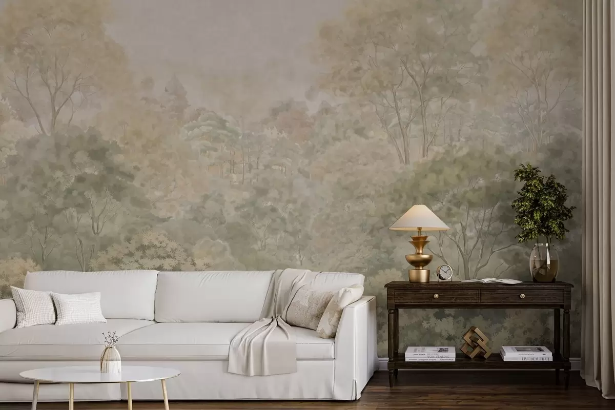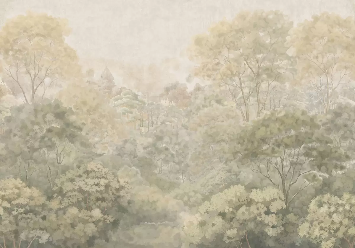 Fototapet Ett gammaldags skogslandskap i dämpade gröna nyanser Nr. w05433