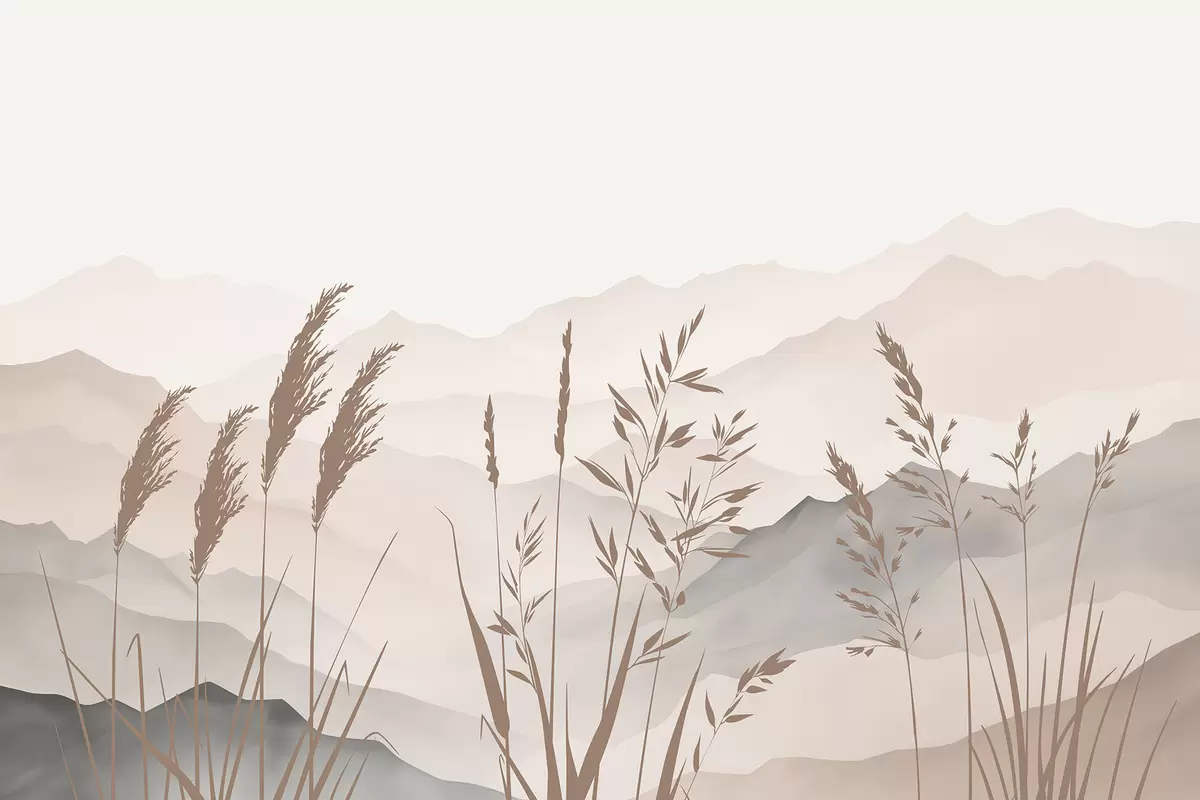 Fototapet Grässilhuetter mot bergen i bakgrunden Nr. w05501v1