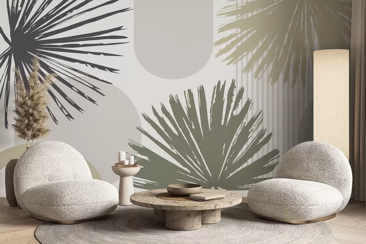 Fototapet Abstraktion med växt- och geometriska silhuetter Nr. w05505v2