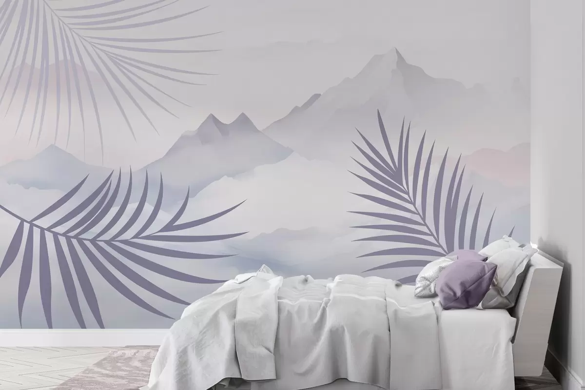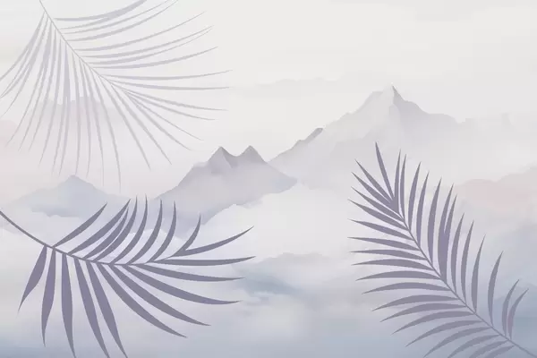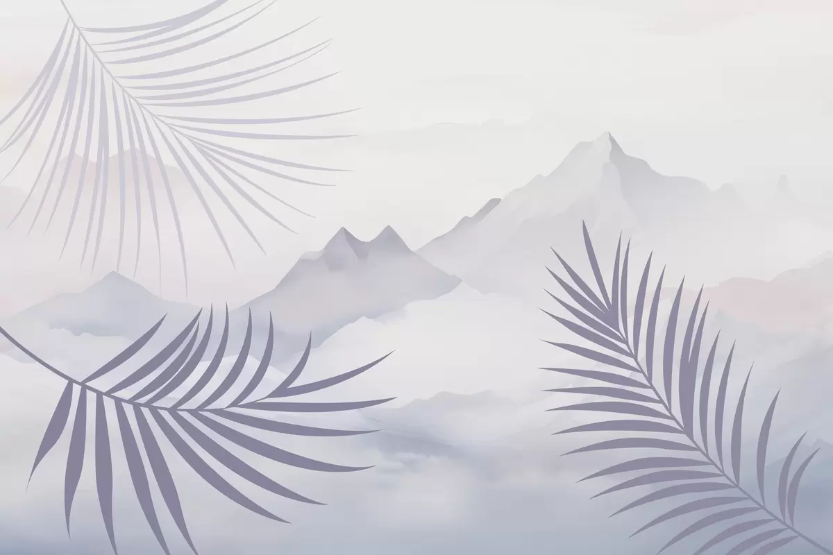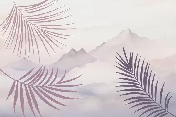 Fototapet Palmblad mot en bakgrund av berg Nr. w05548