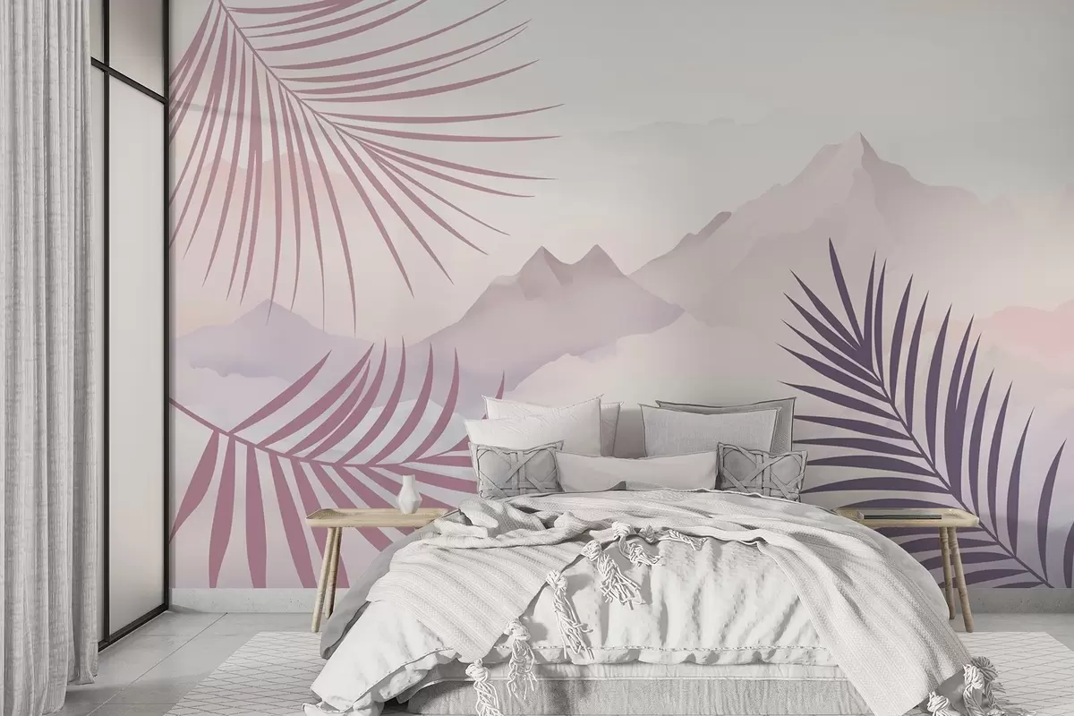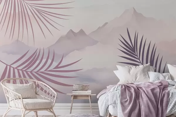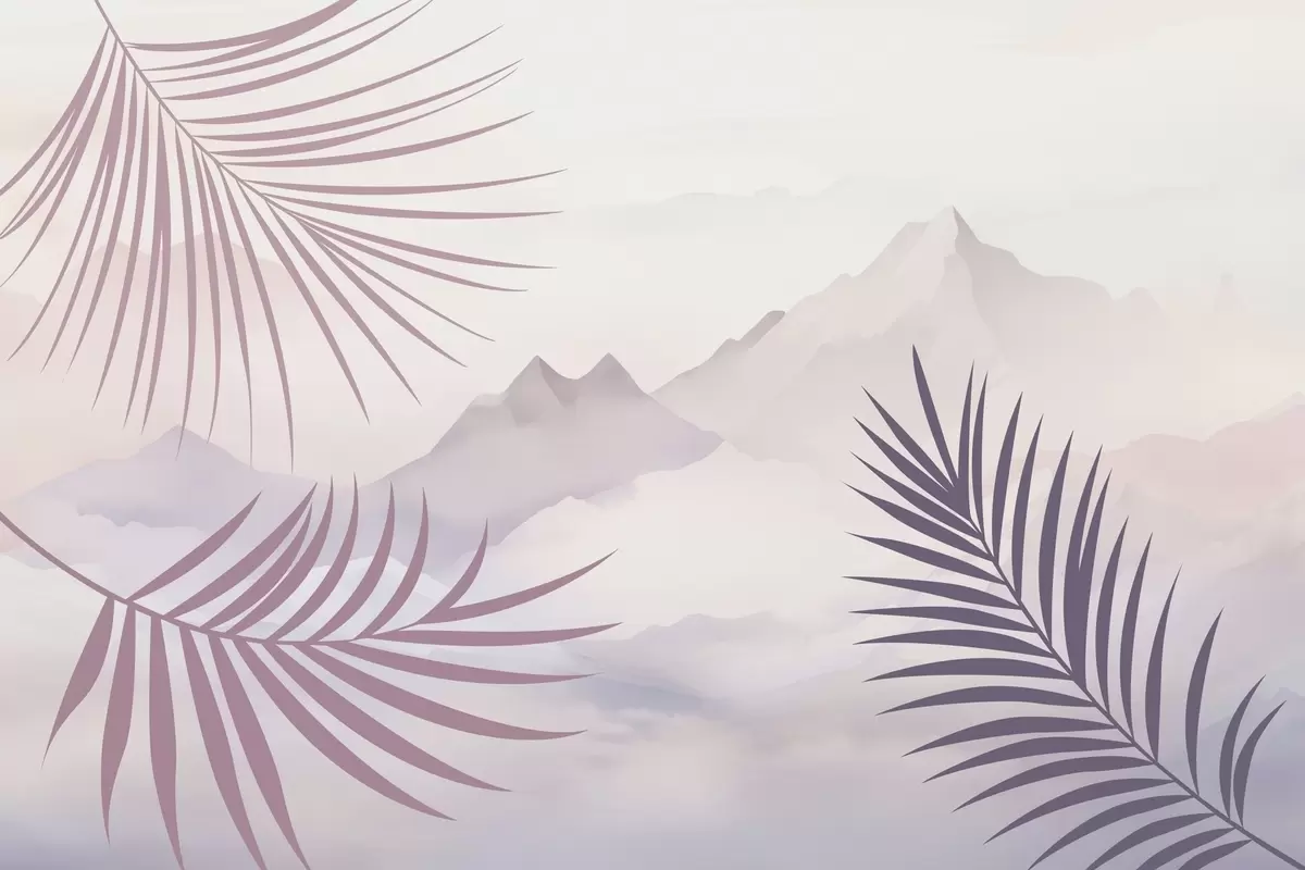 Fototapet Palmblad mot en bakgrund av berg Nr. w05548v1