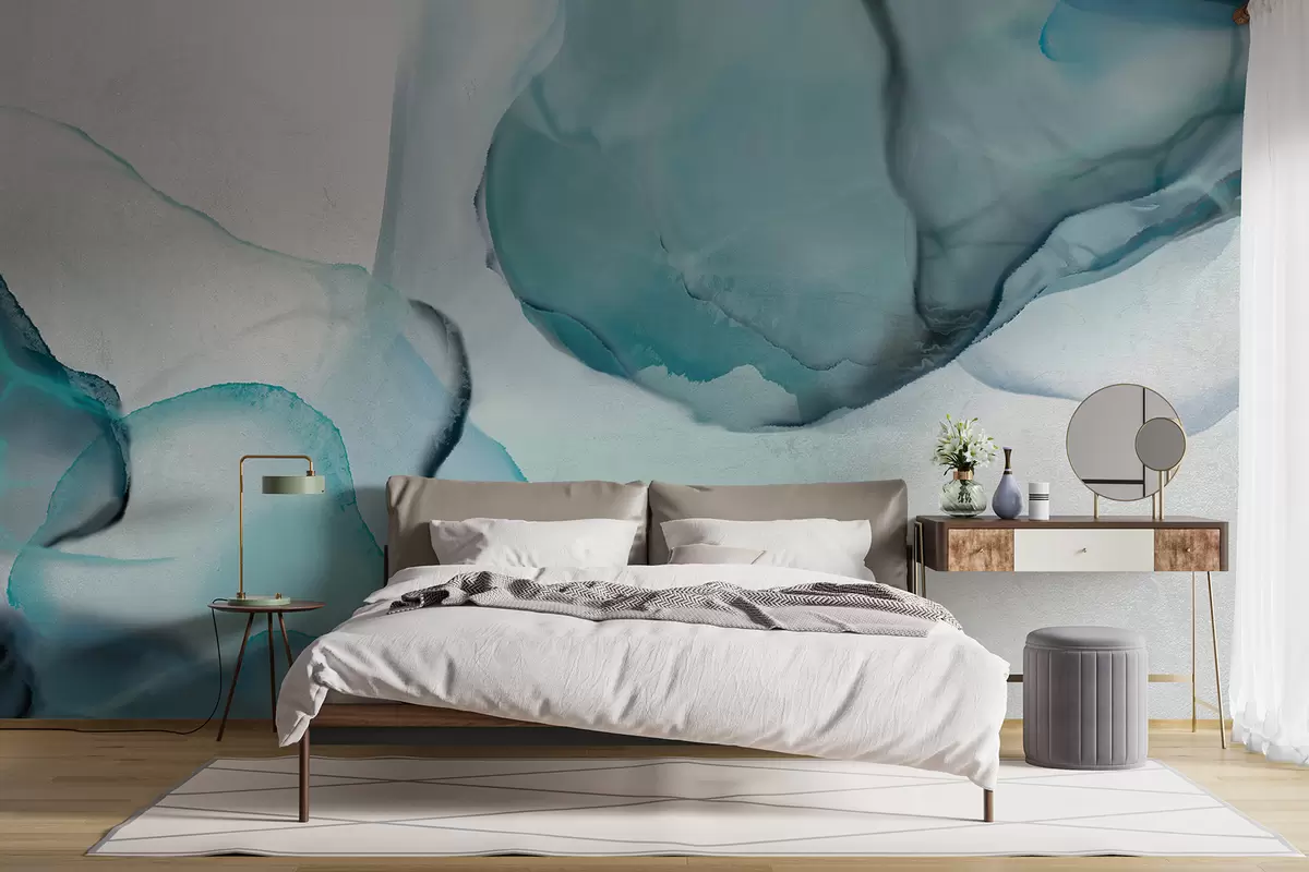 Fototapet Abstrakt blå och vit flytande konst, som liknar strömmande vatten och bläck Nr. w07927