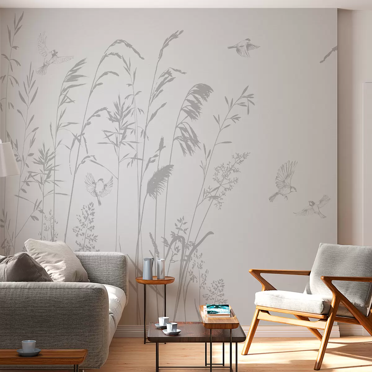 Fototapet Växter och små fåglar naturen minimalism grå färg Nr. w08172v1