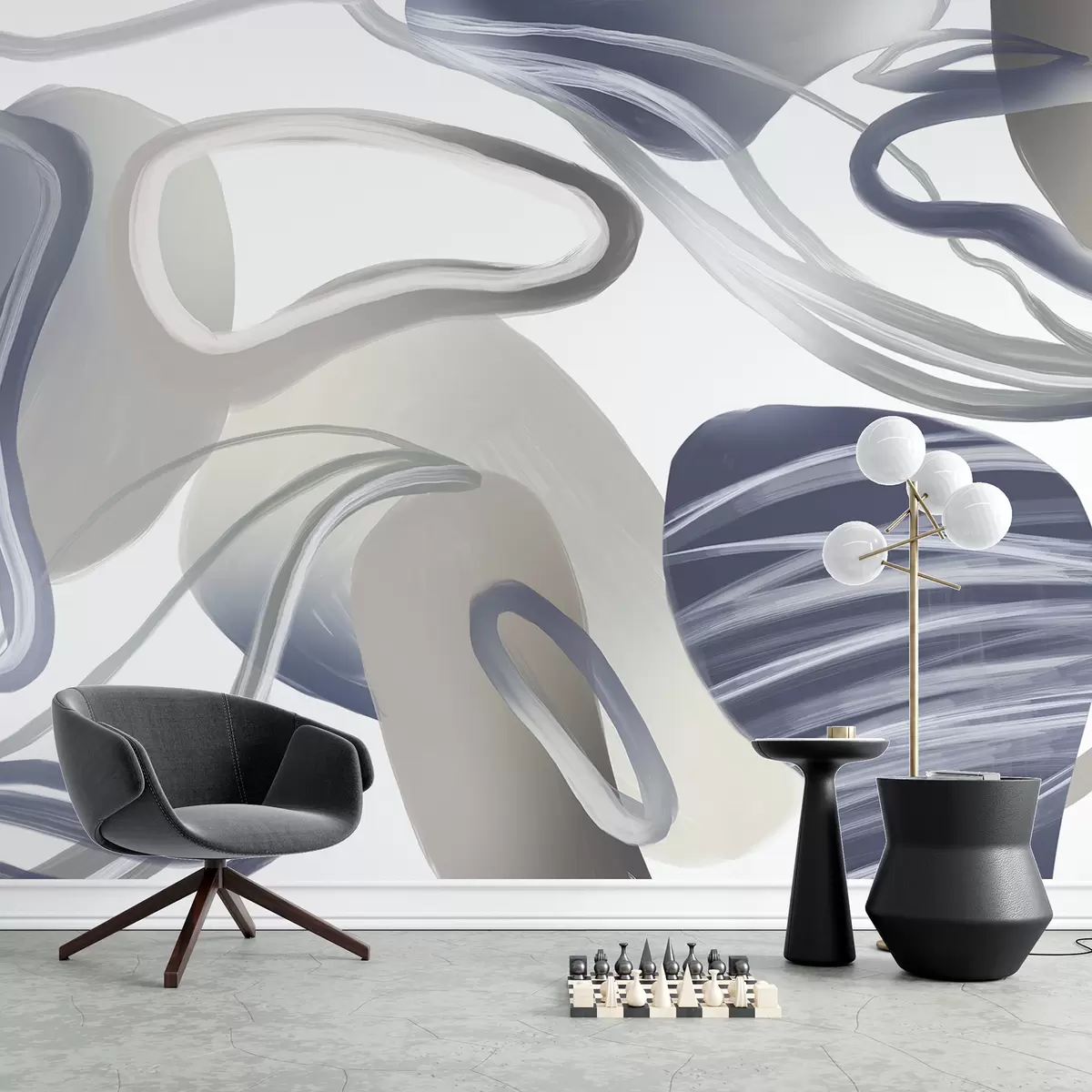 Fototapet Abstrakta virvlande former och kurvor i mörkblå nyanser skapar en dynamisk och flödande komposition Nr. w08279v1