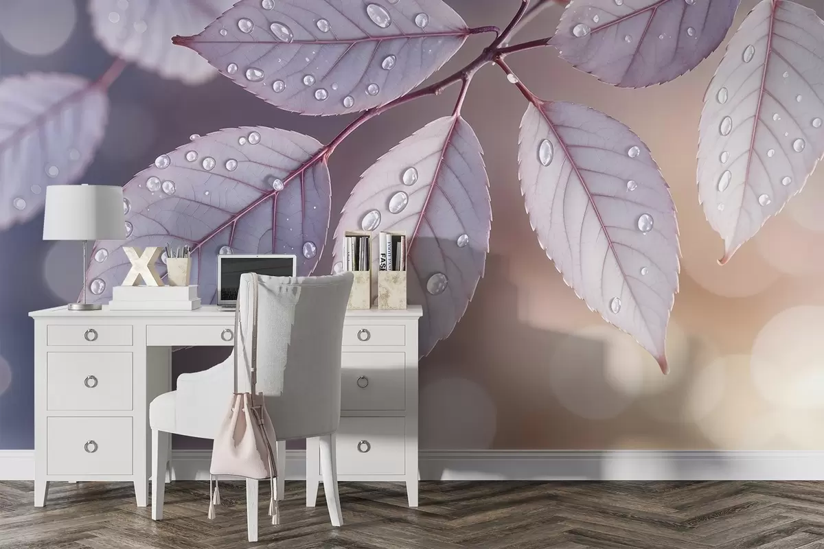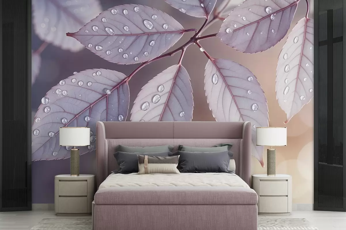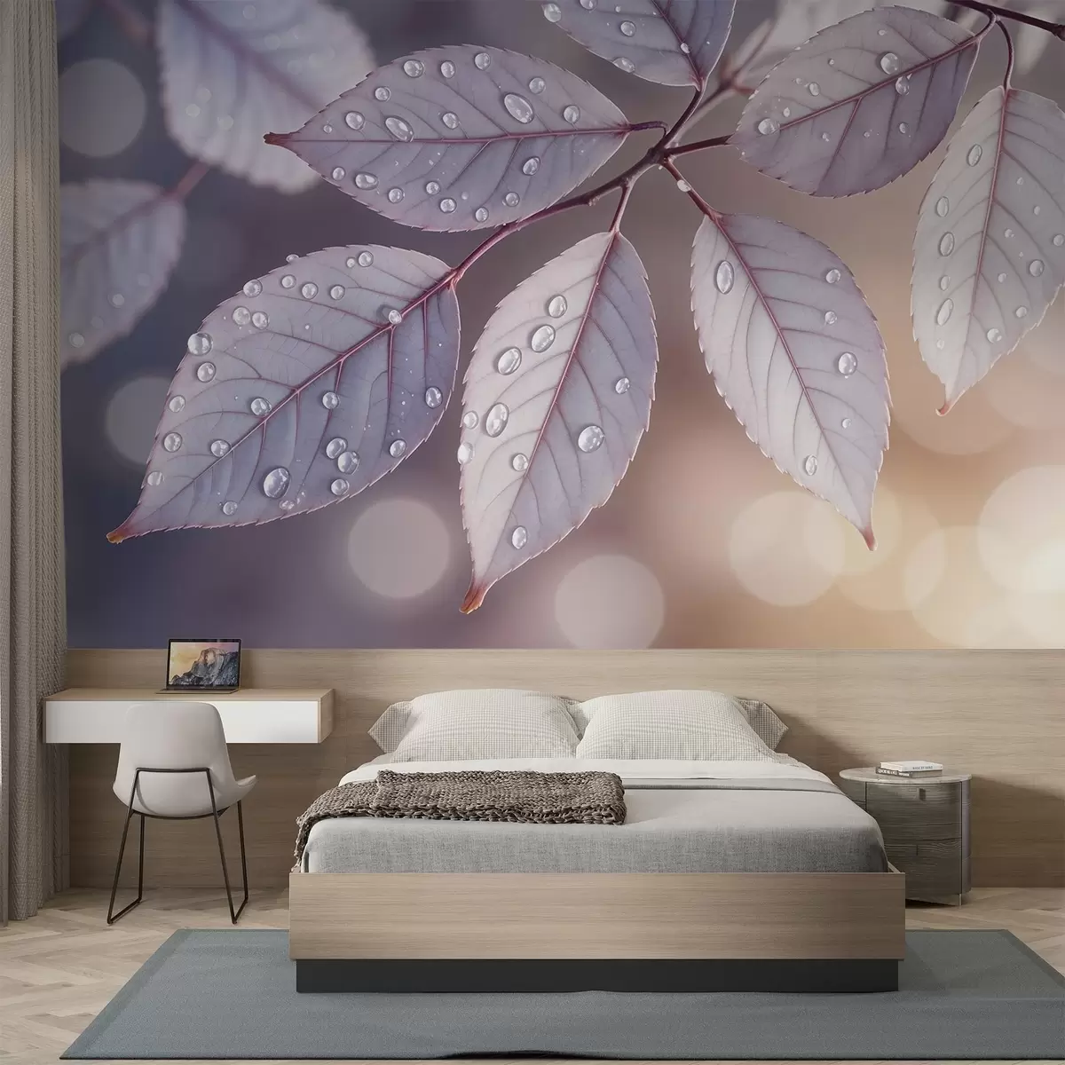 Fototapet Delikata lila blad med vattendroppar, bakgrund med mjukt fokus Nr. w08419